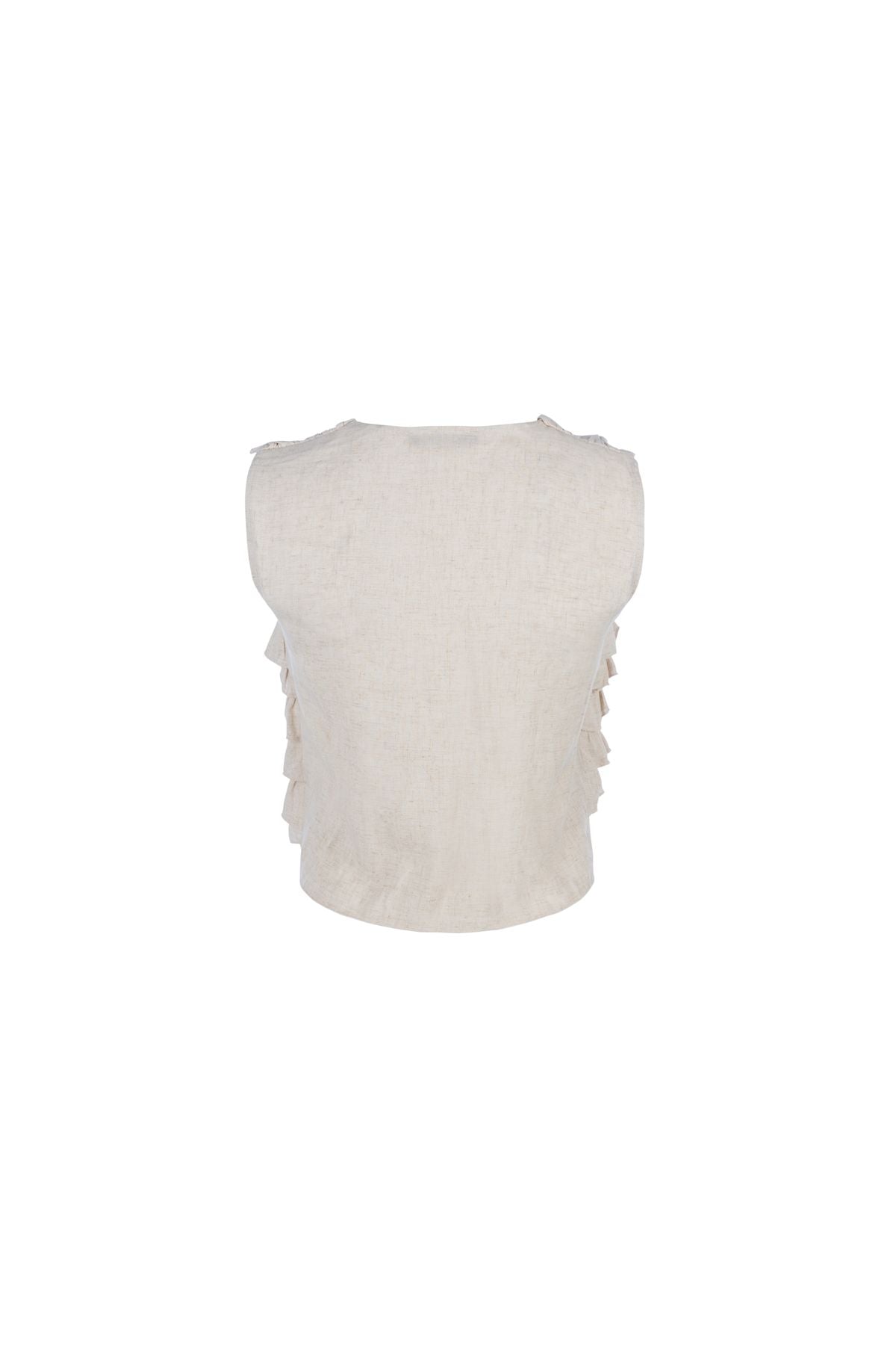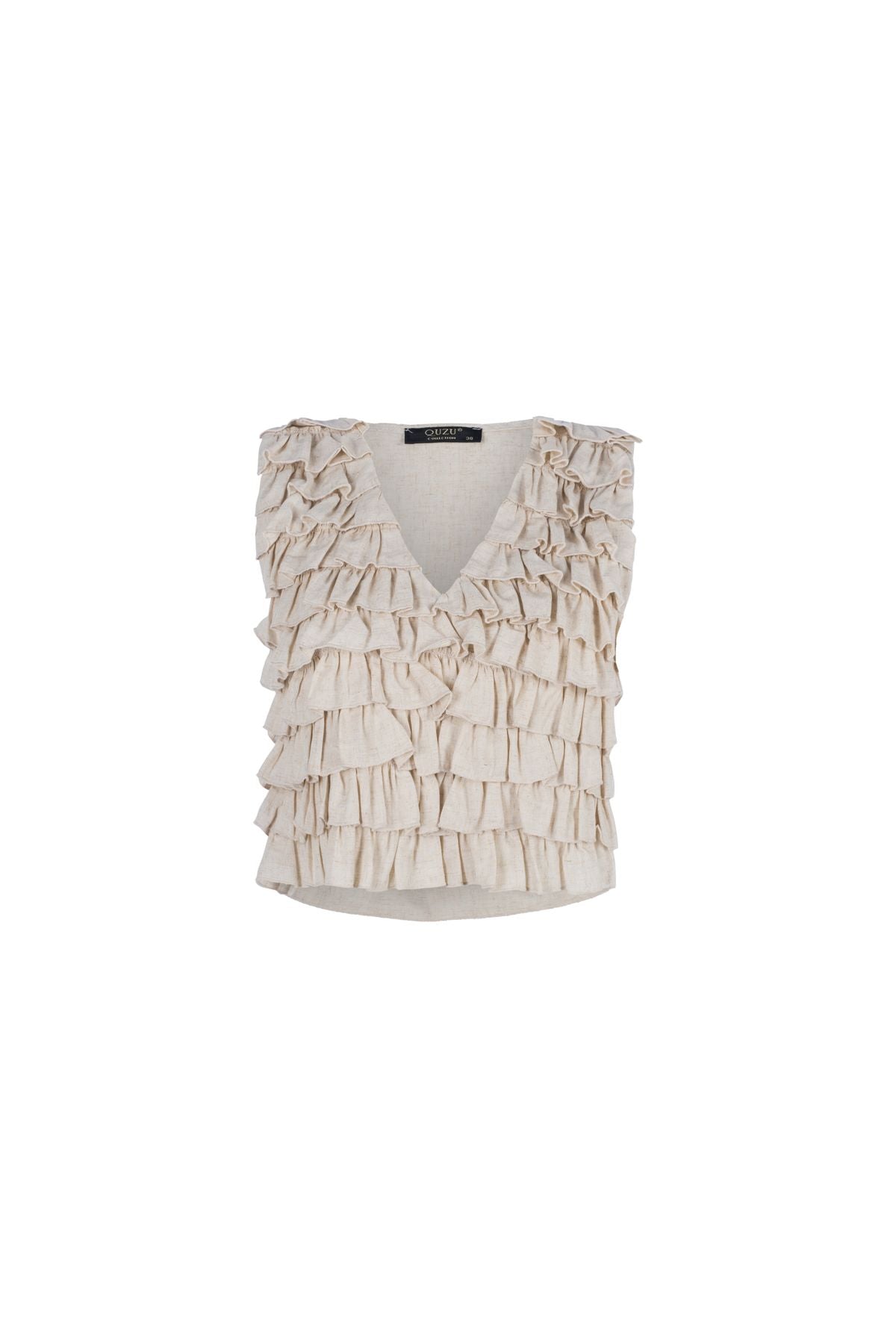 Fırfırlı V Yaka Keten Bluz Naturel