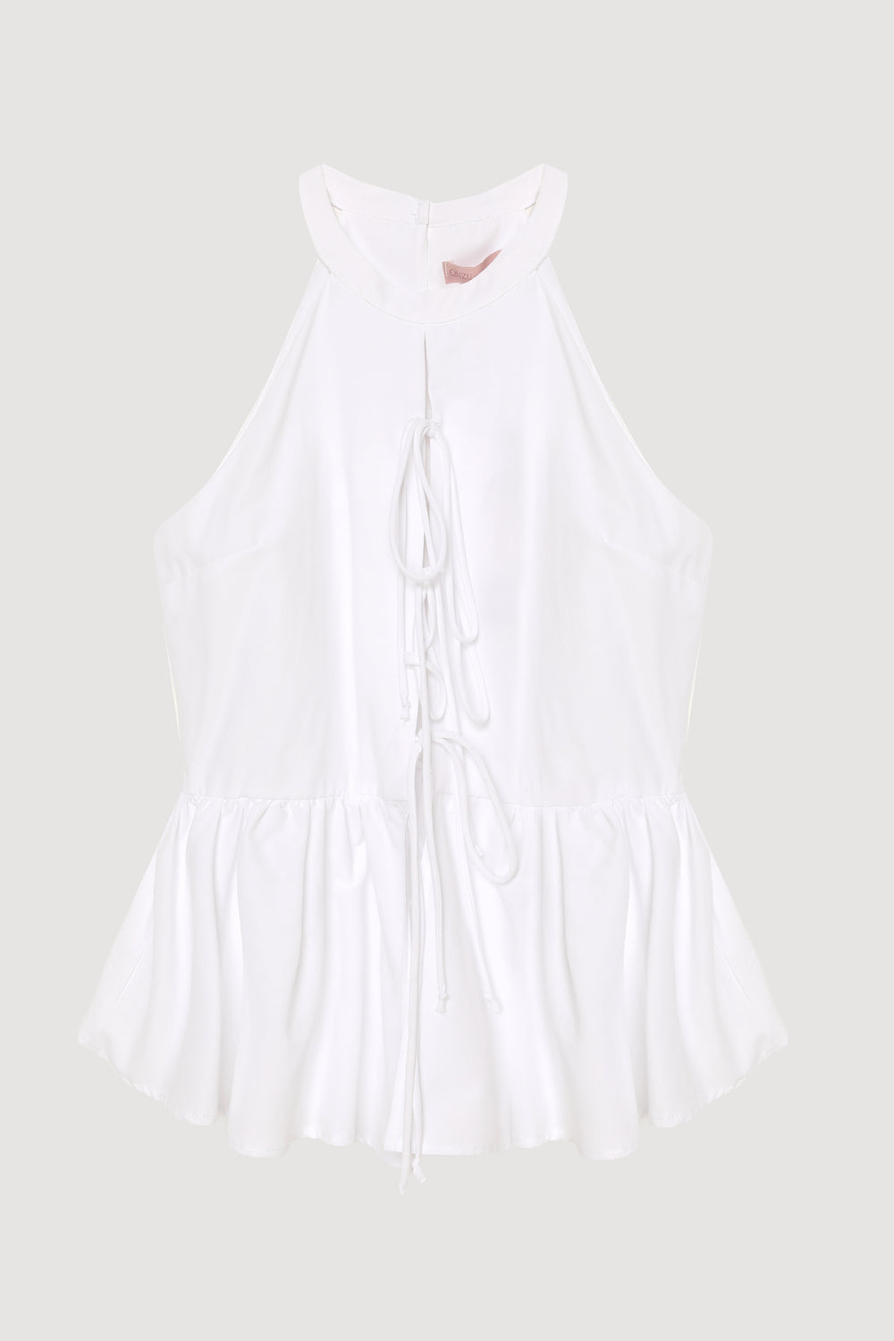 Önü Bağcıklı Halter Yaka Bluz Beyaz