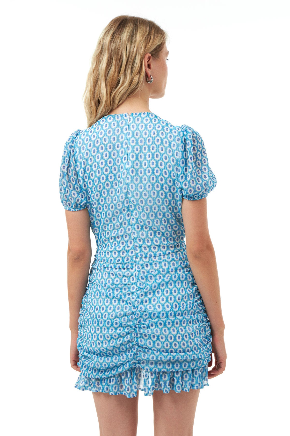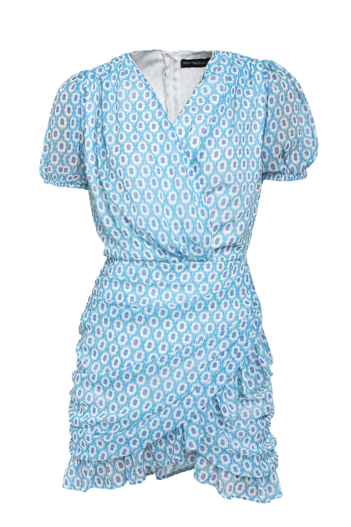 Kruvaze Şifon Mini Elbise Mavi