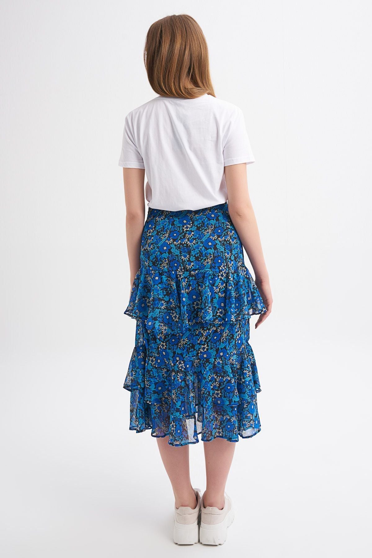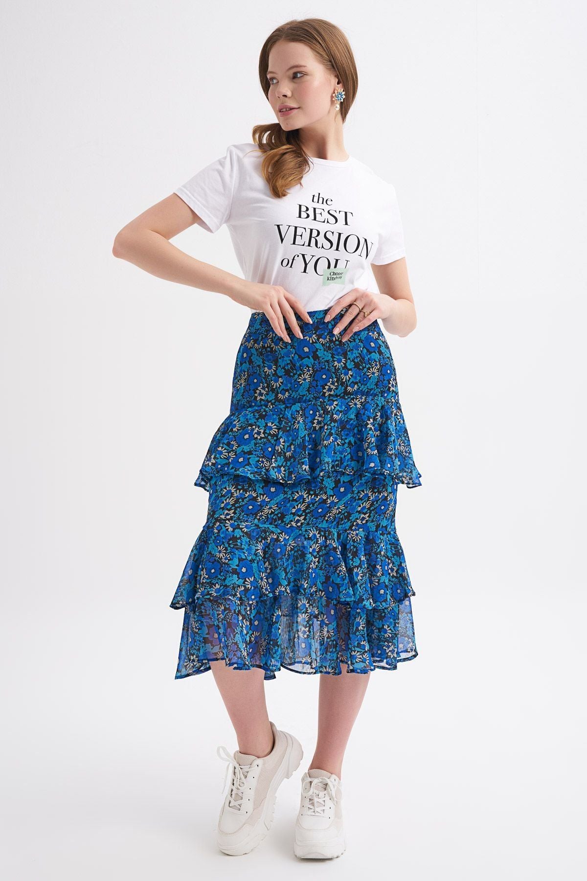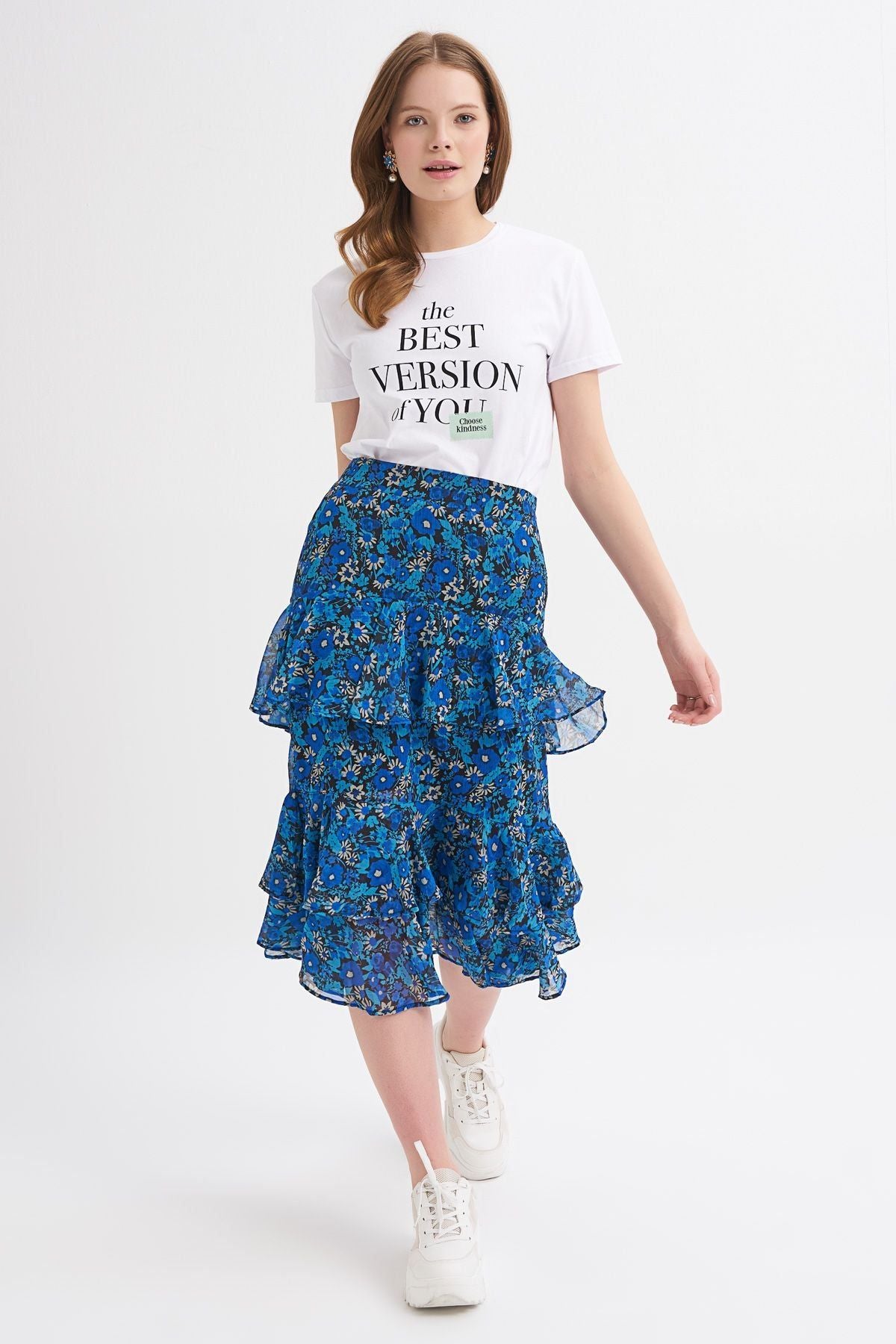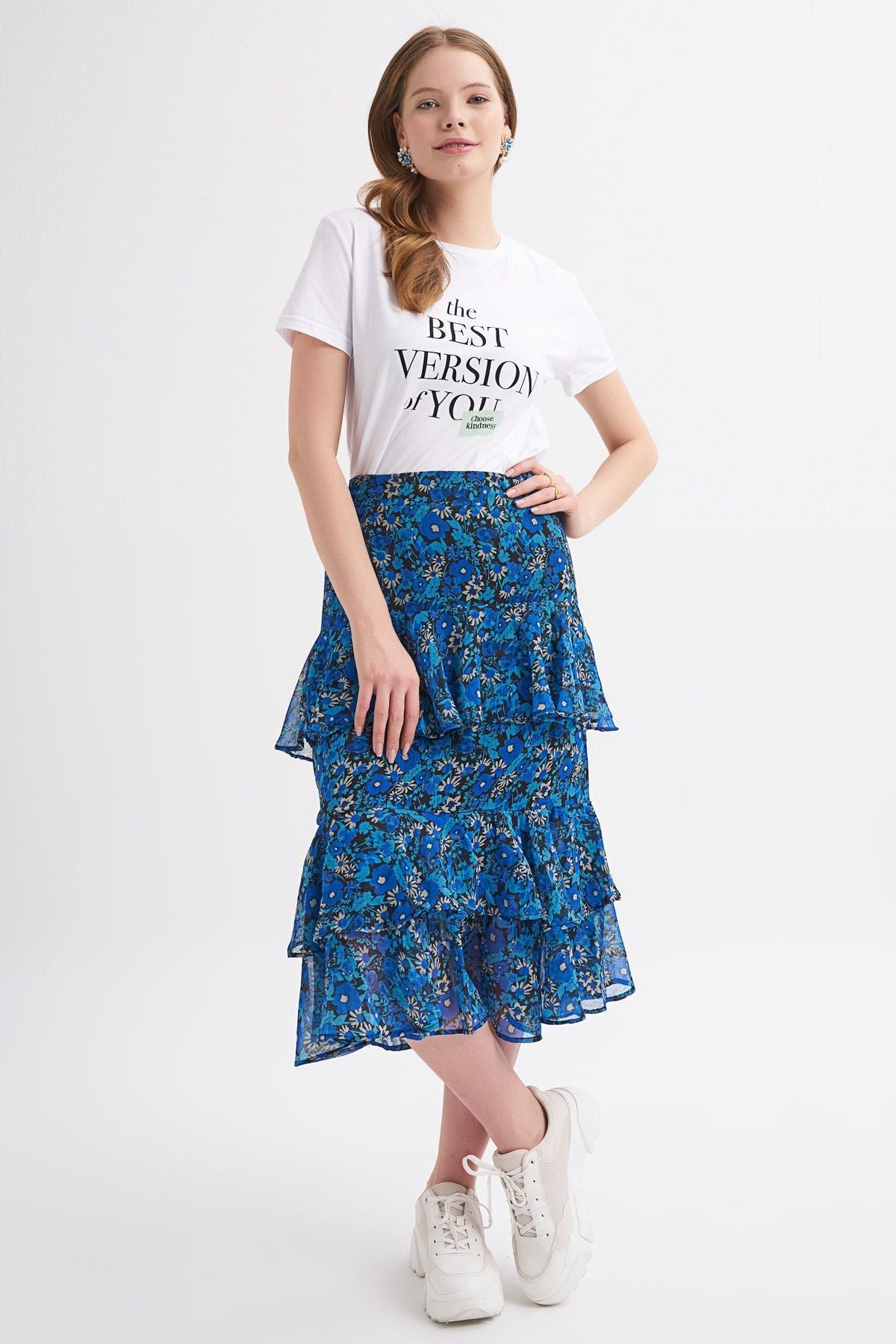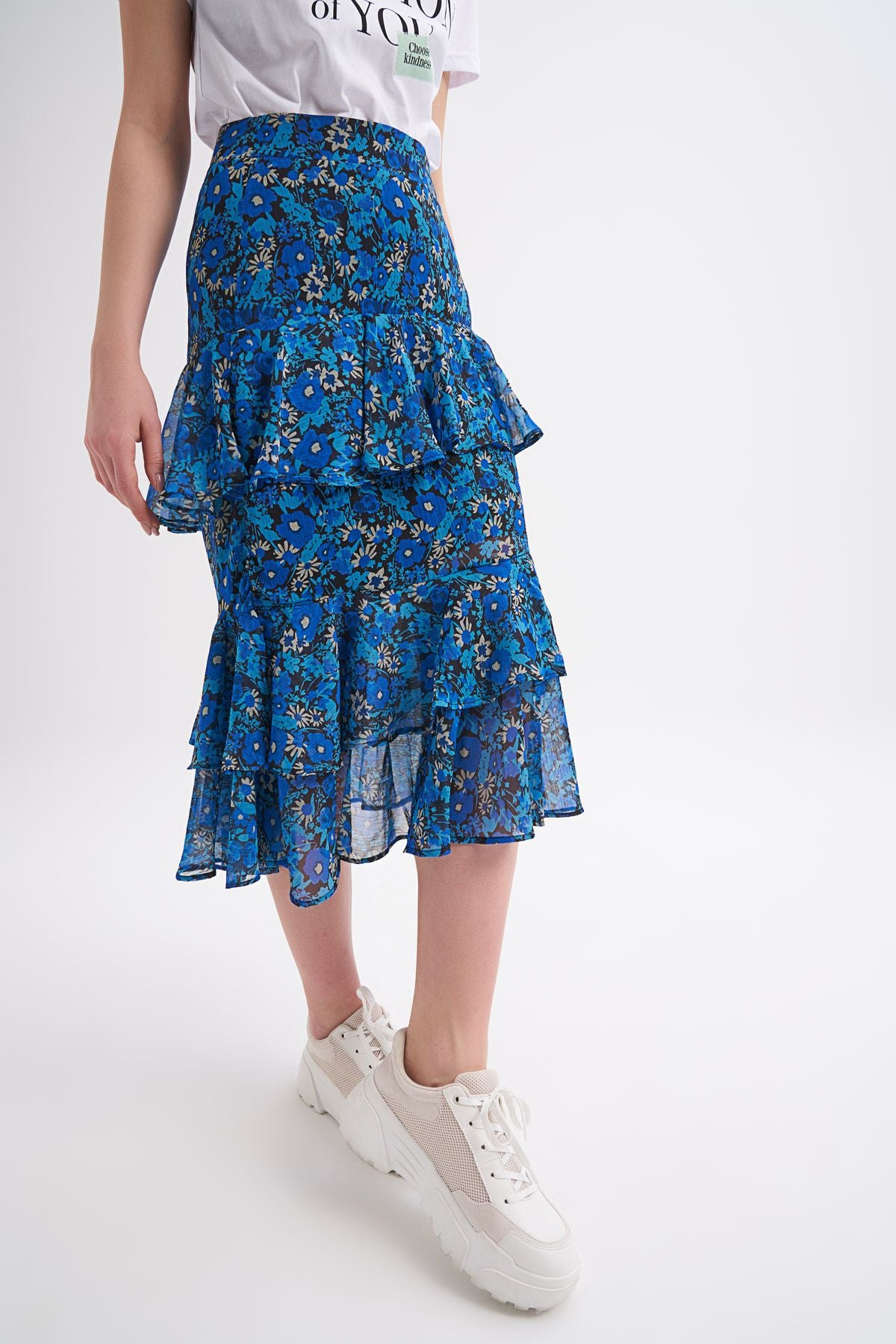 2020 modasına öncülük eden fırfır detayları ve hareketli bir ritme sahip dokusu ile midi boy etek, yazın vazgeçilmezi olmaya aday.