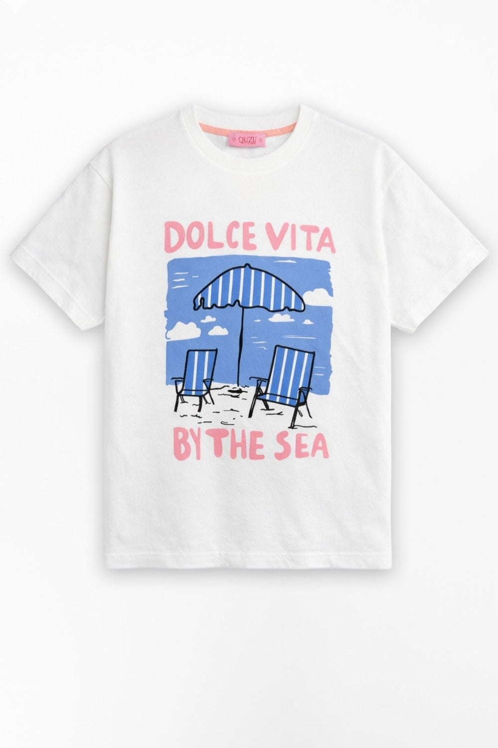 Plaj Baskılı Oversize Tişört Ekru