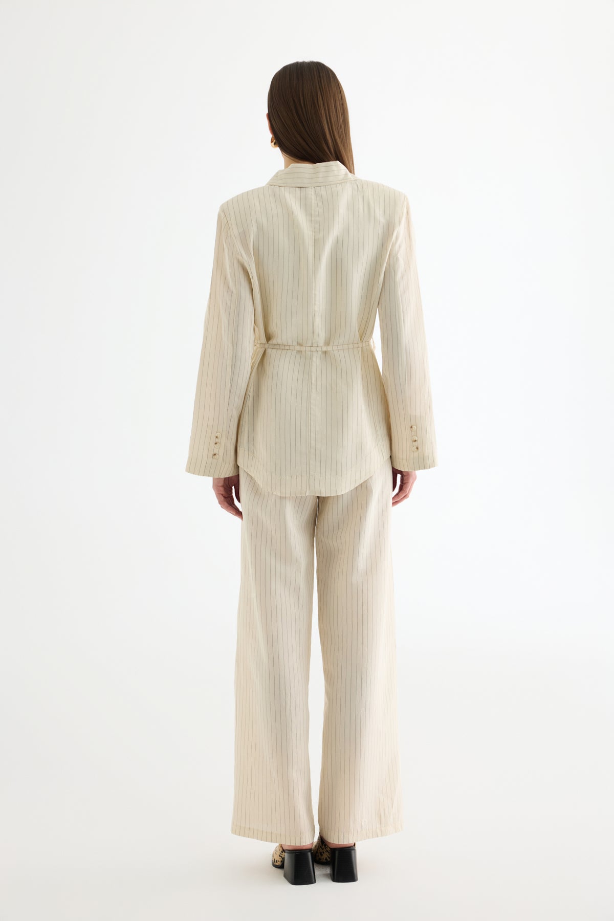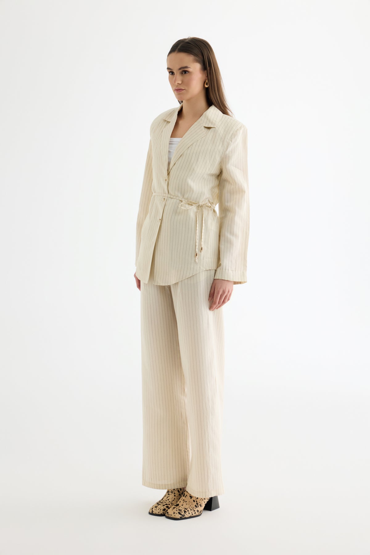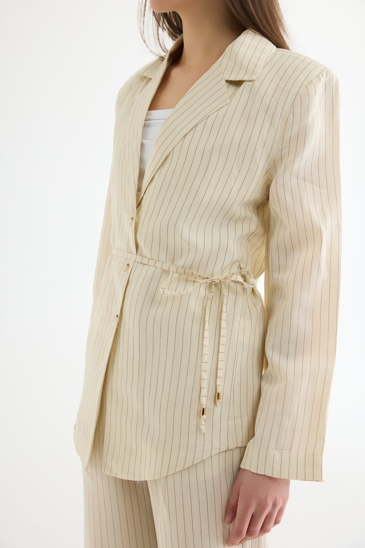 Çizgili Bağcıklı Gömlek Ceket Ekru