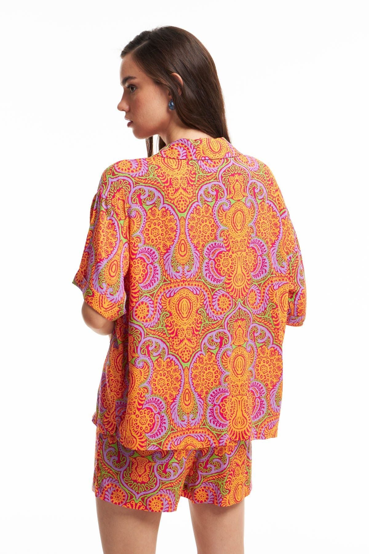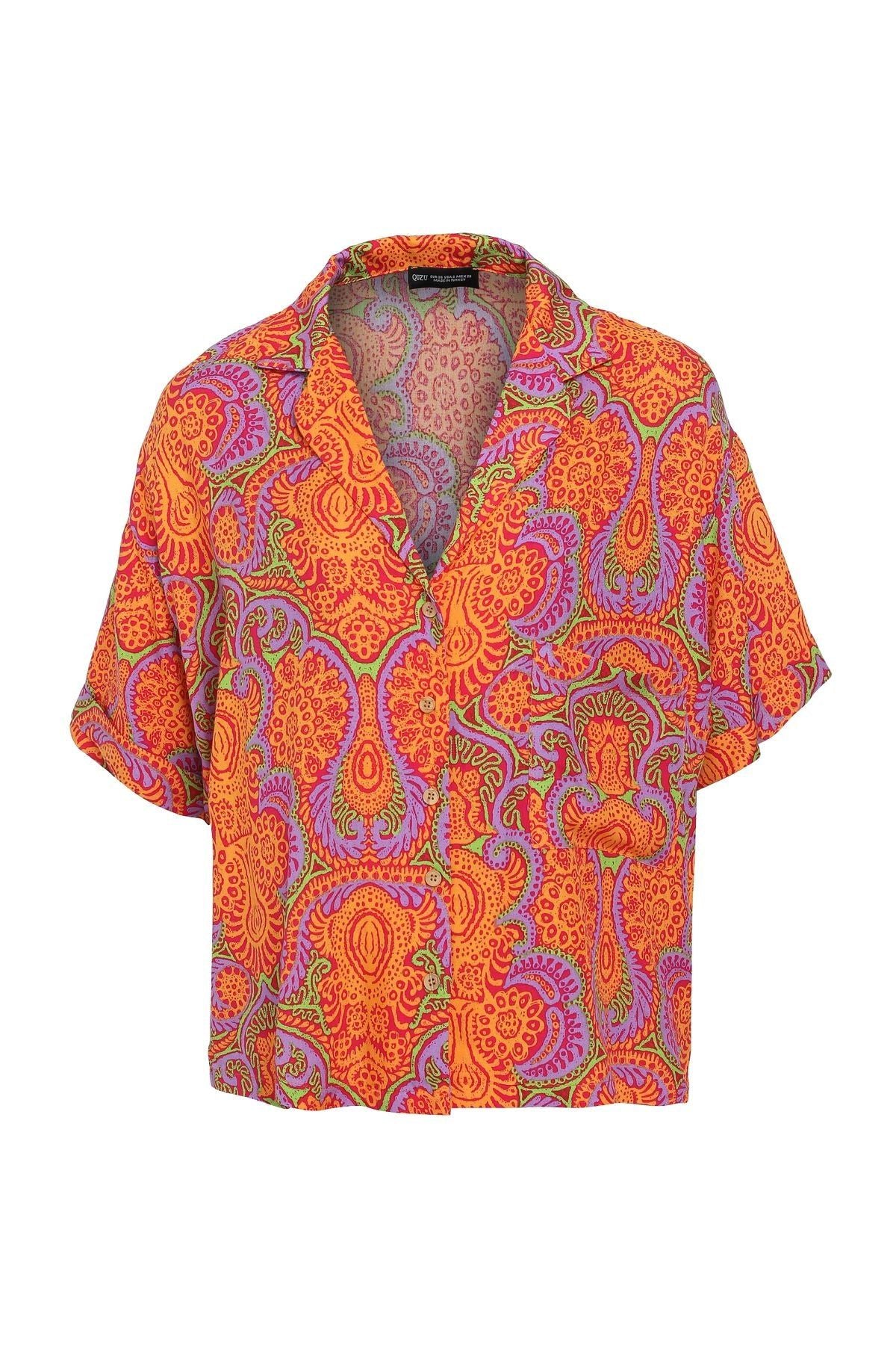 Desenli Kısa Kollu Gömlek Turuncu