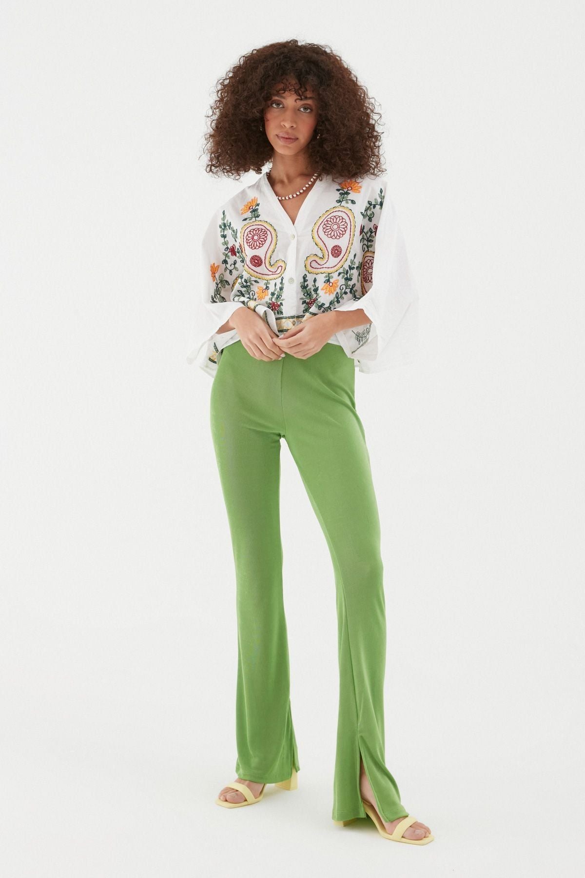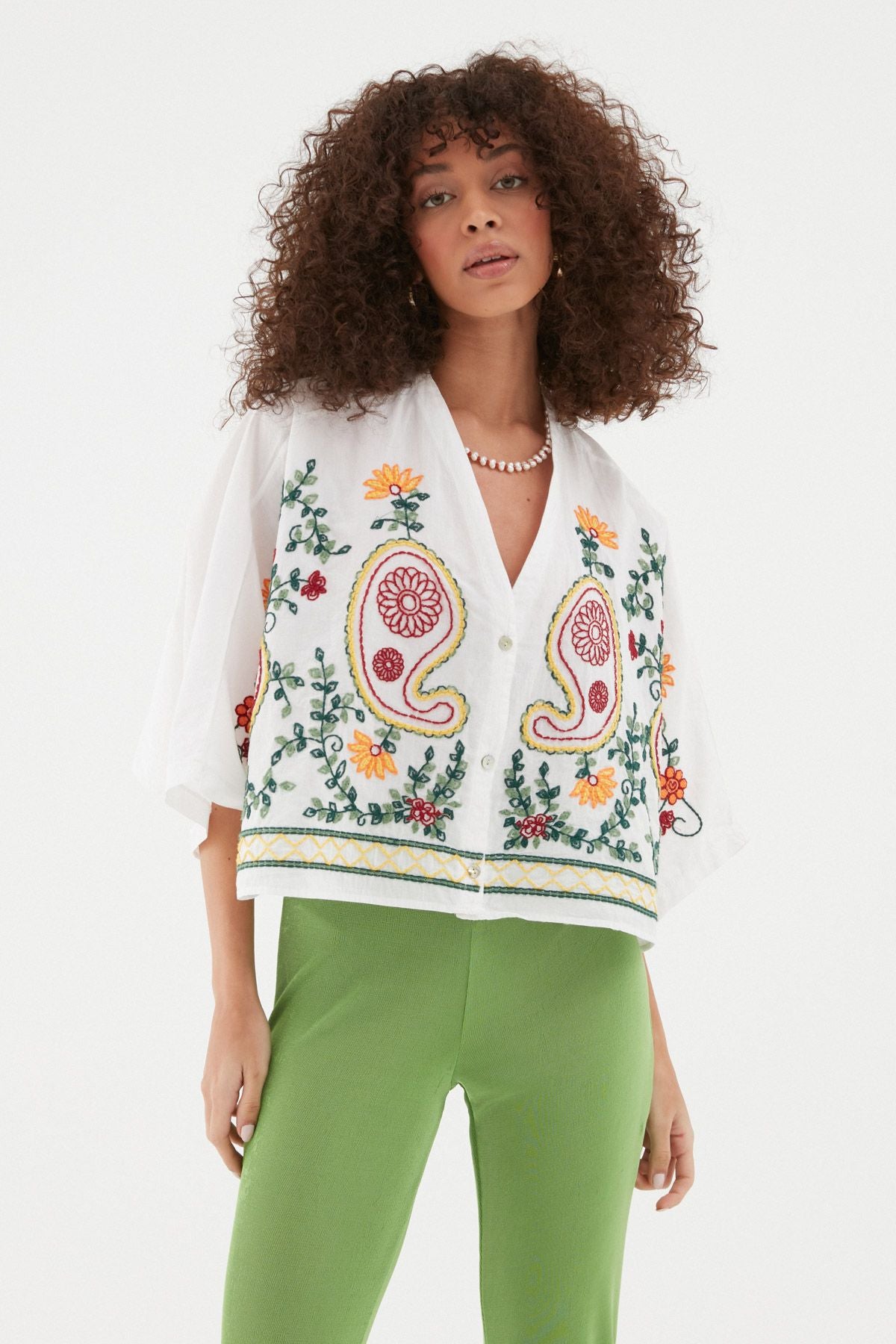 Kombinlerine nostaljik bir hava katmak istiyorsan nakış işlemeli gömlek modeline şans vermelisin :) Yarasa kol crop gömlek modeli nakış işlemesinin enerjisi ile kombinlerinde baharı hissettiyor. Nakış trendini yakalamak istiyorsan nakış işlemeli oversize gömlek modeli aradığın parça olabilir :)