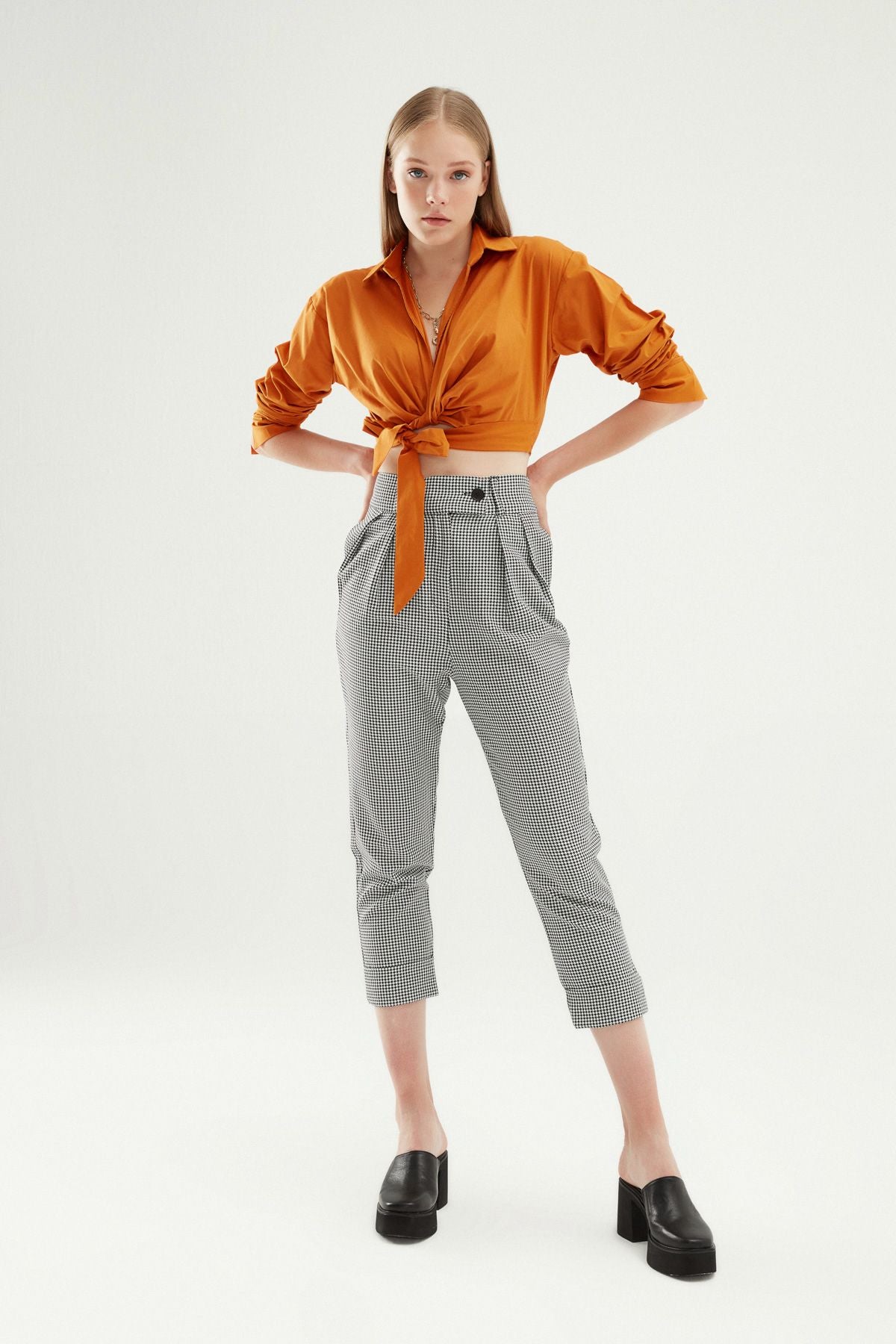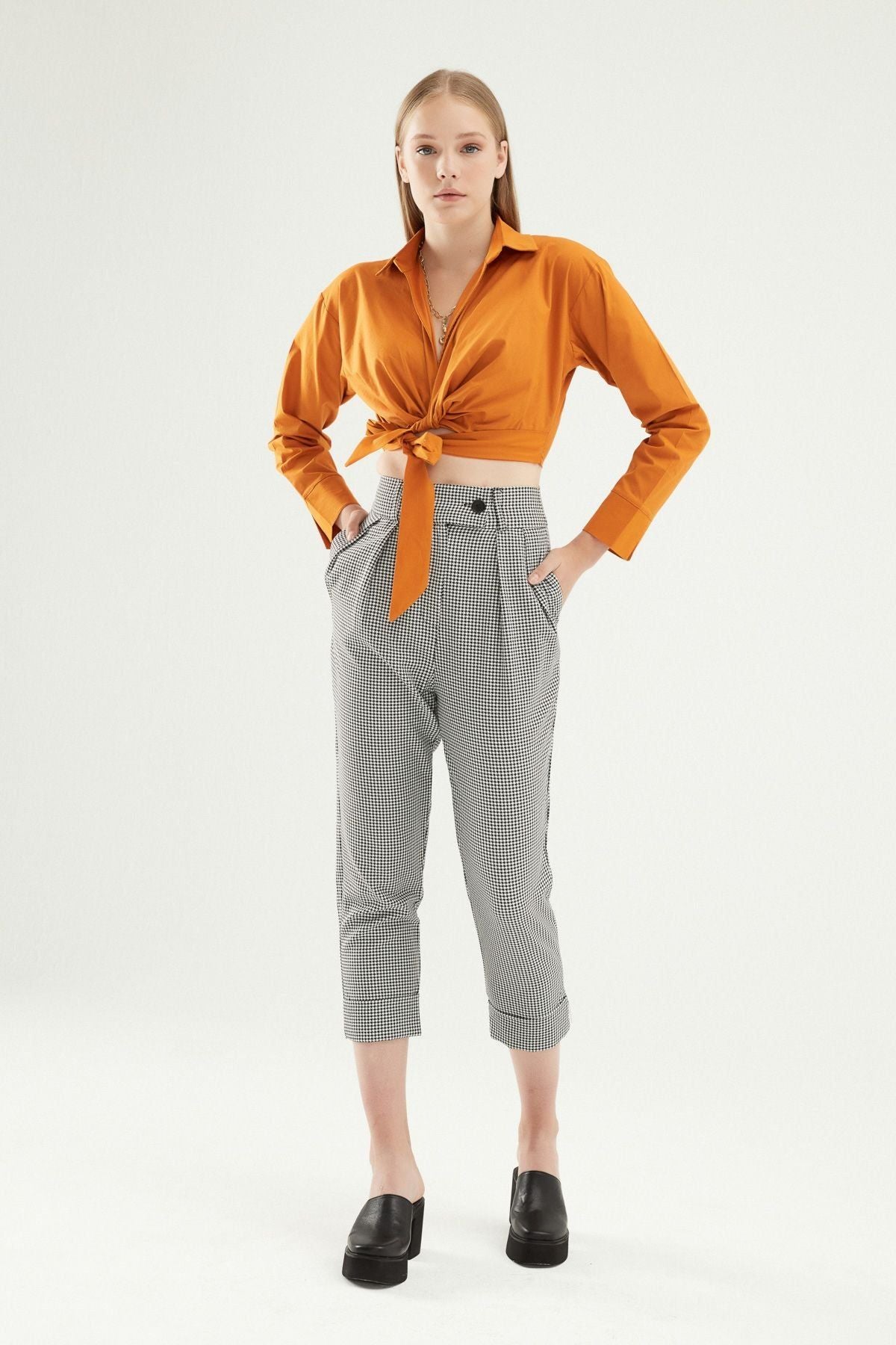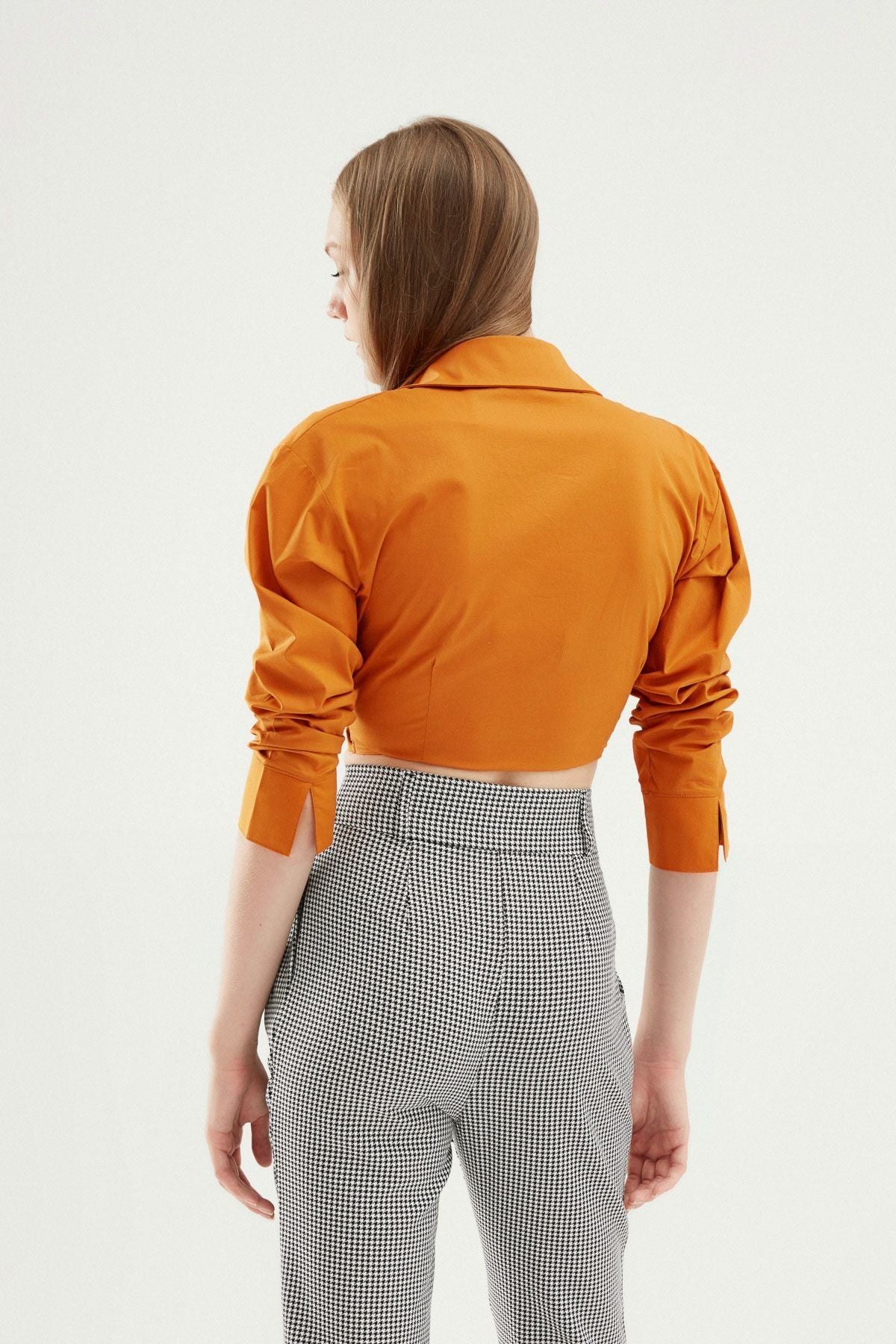 Önü Bağlamalı Crop Gömlek Koyu Oranj