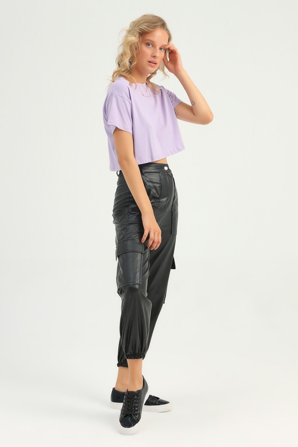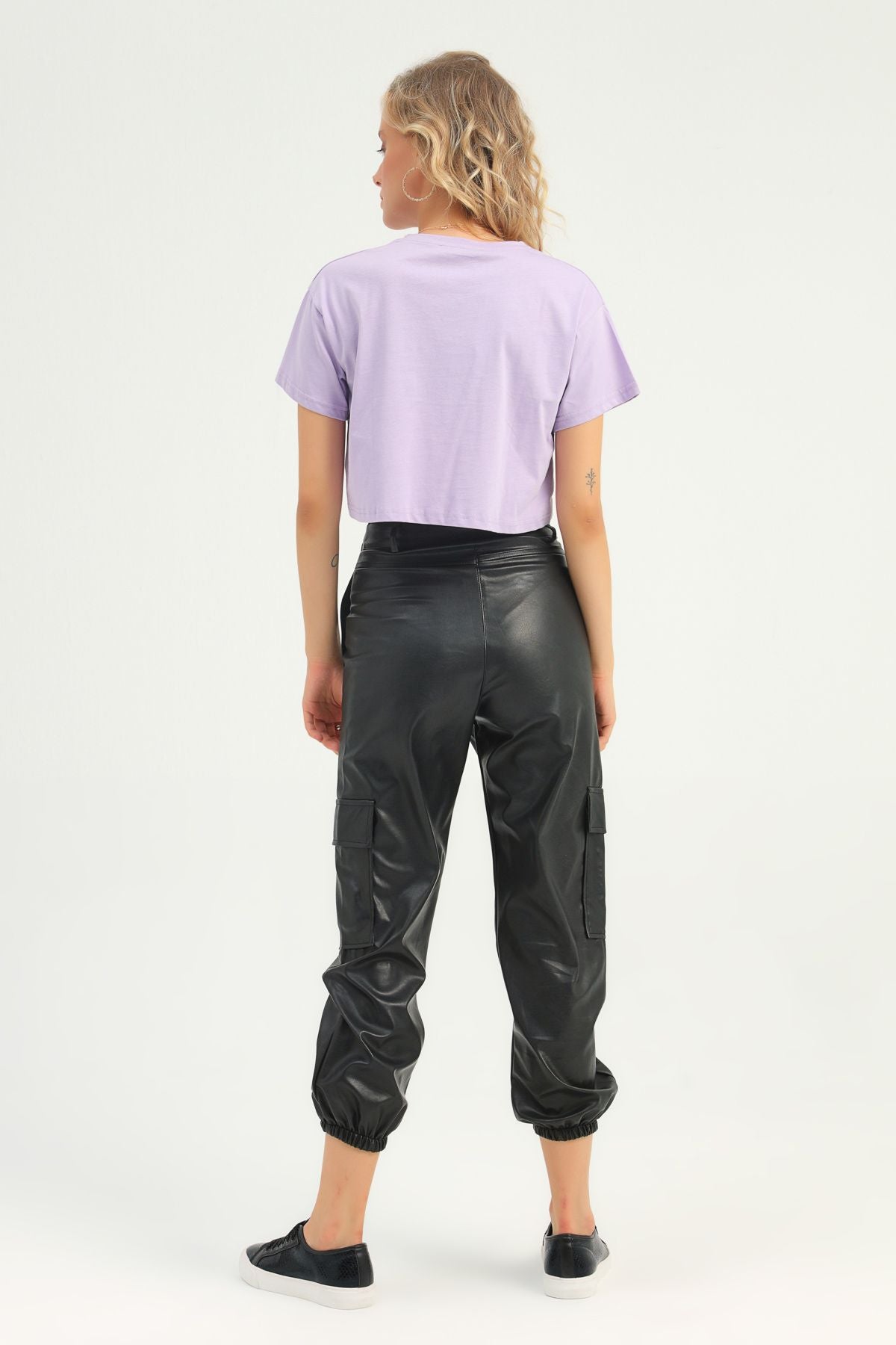 Kargo Cepli Deri Jogger Pantolon Siyah