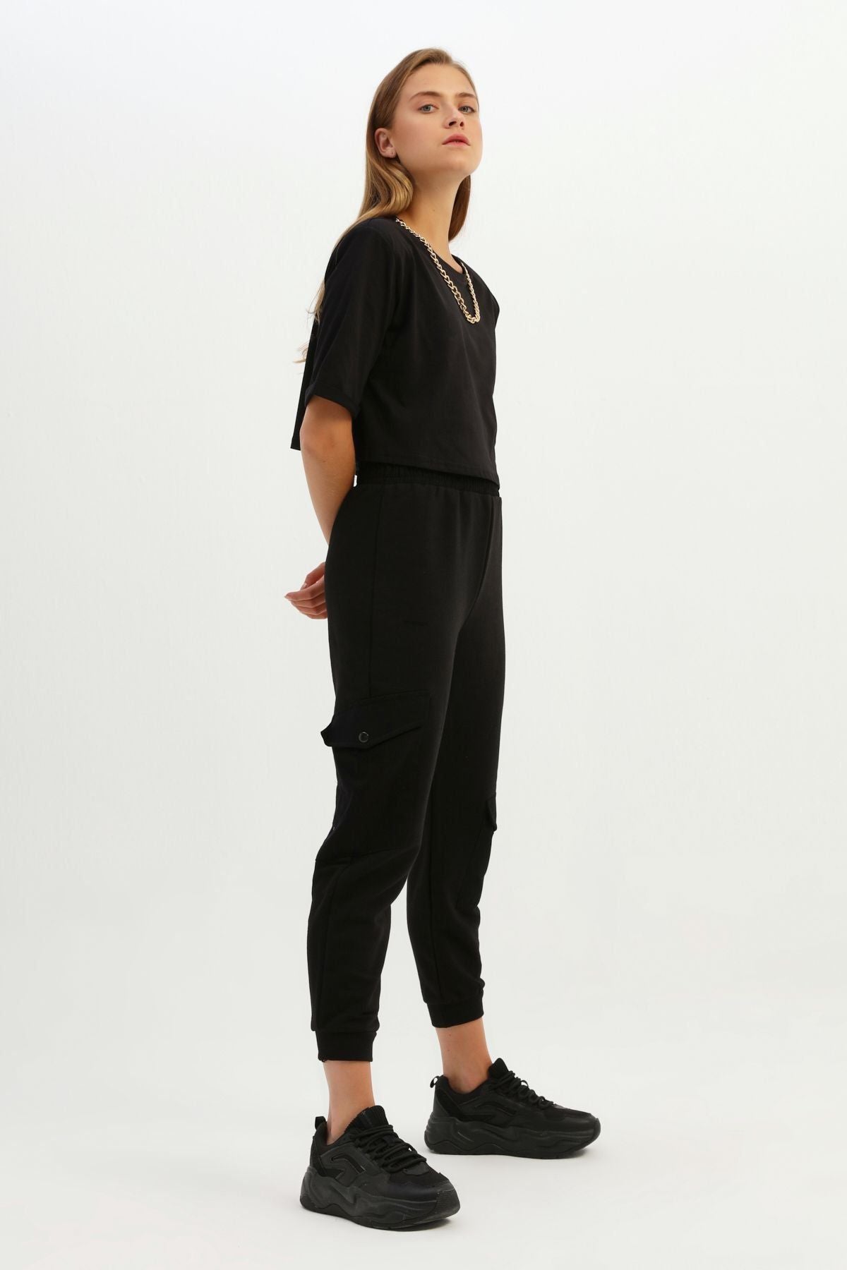 Kargo Cepli Jogger Pantolon Siyah