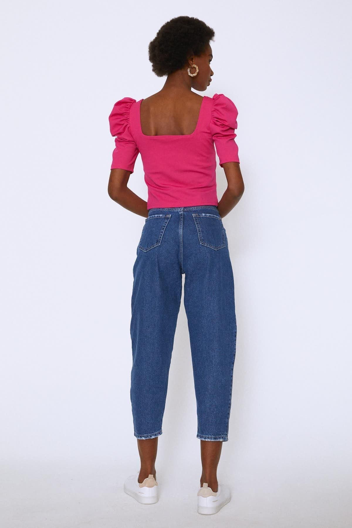 Yüksek Bel Slouchy Pantolon Mavi
