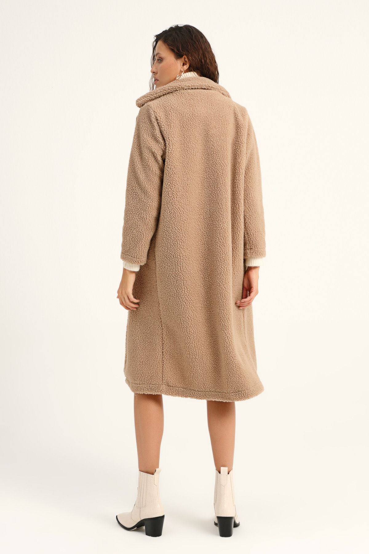 Peluş kaban modeli; yumuşacık tuşesi ve vücuda oturan kalıbıyla soğuk havalarda da her koşulda seni ısıtmak için ideal bir seçenek sunuyor. Peluş kaban modeli, uzun olmasının sağladığı avantajın yanında yaka duruşu ve tek düğme detayıyla şıklığının dozunu artırıyor. Sezonun trend parçalarından olan pelüş kabanlar, mini eteklerine eşlik eden trikolarla harika uyum yakalamana yardımcı olacak!