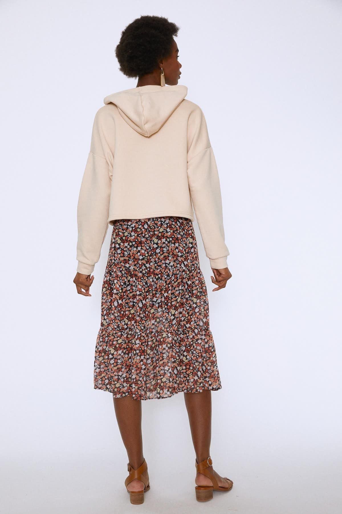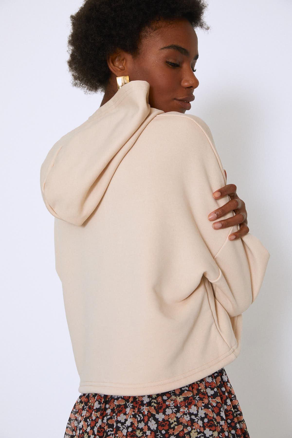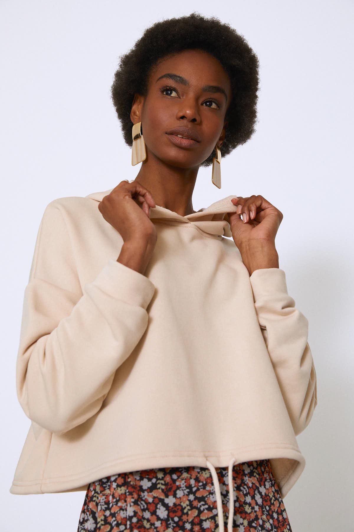 Kapüşonlu Beli Bağcıklı Sweatshirt Bej
