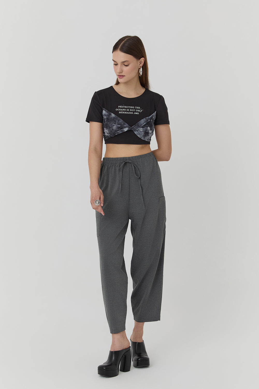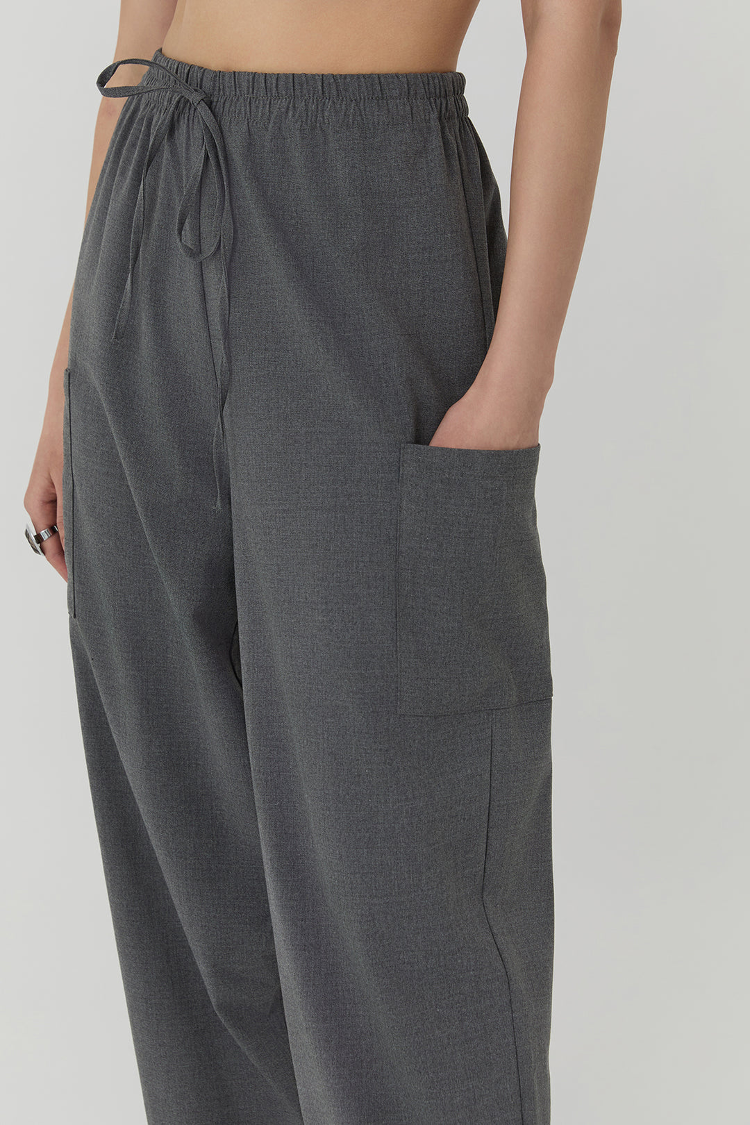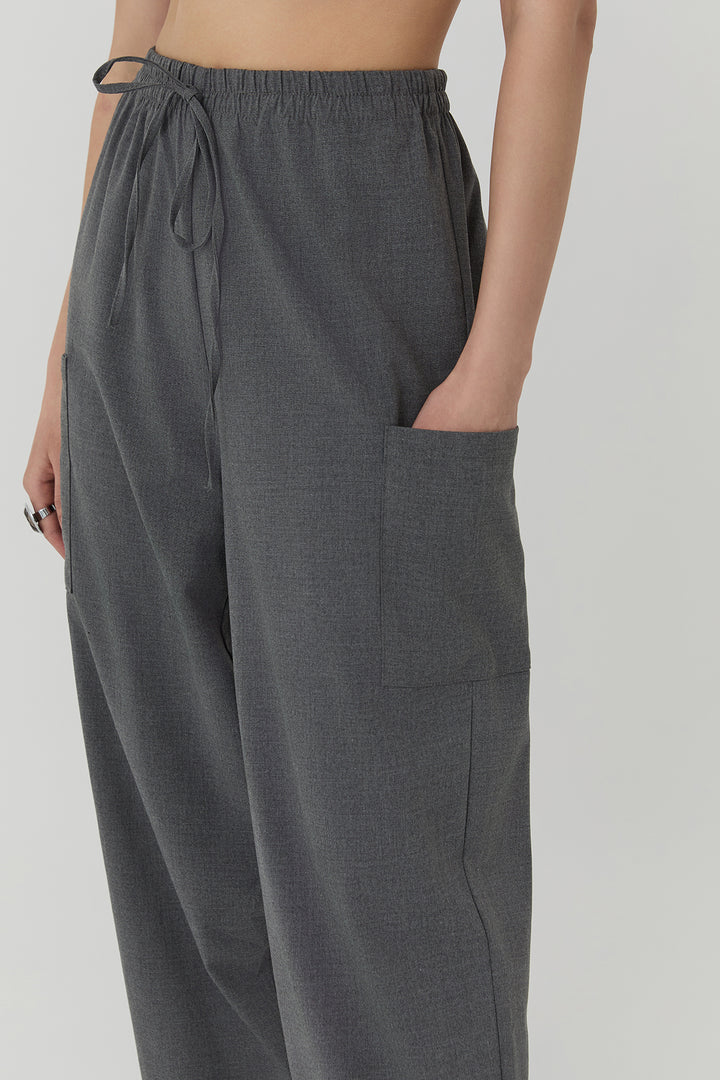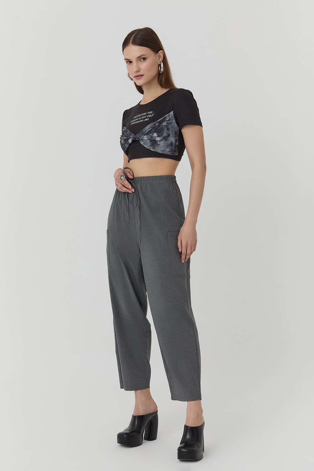 Beli Lastikli Cep Detaylı Kargo Pantolon Koyu Gri