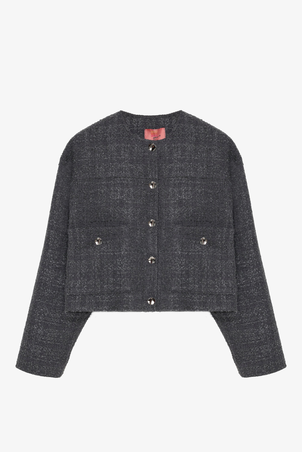 Yuvarlak Yaka Cepli Tüvit Ceket Antrasit