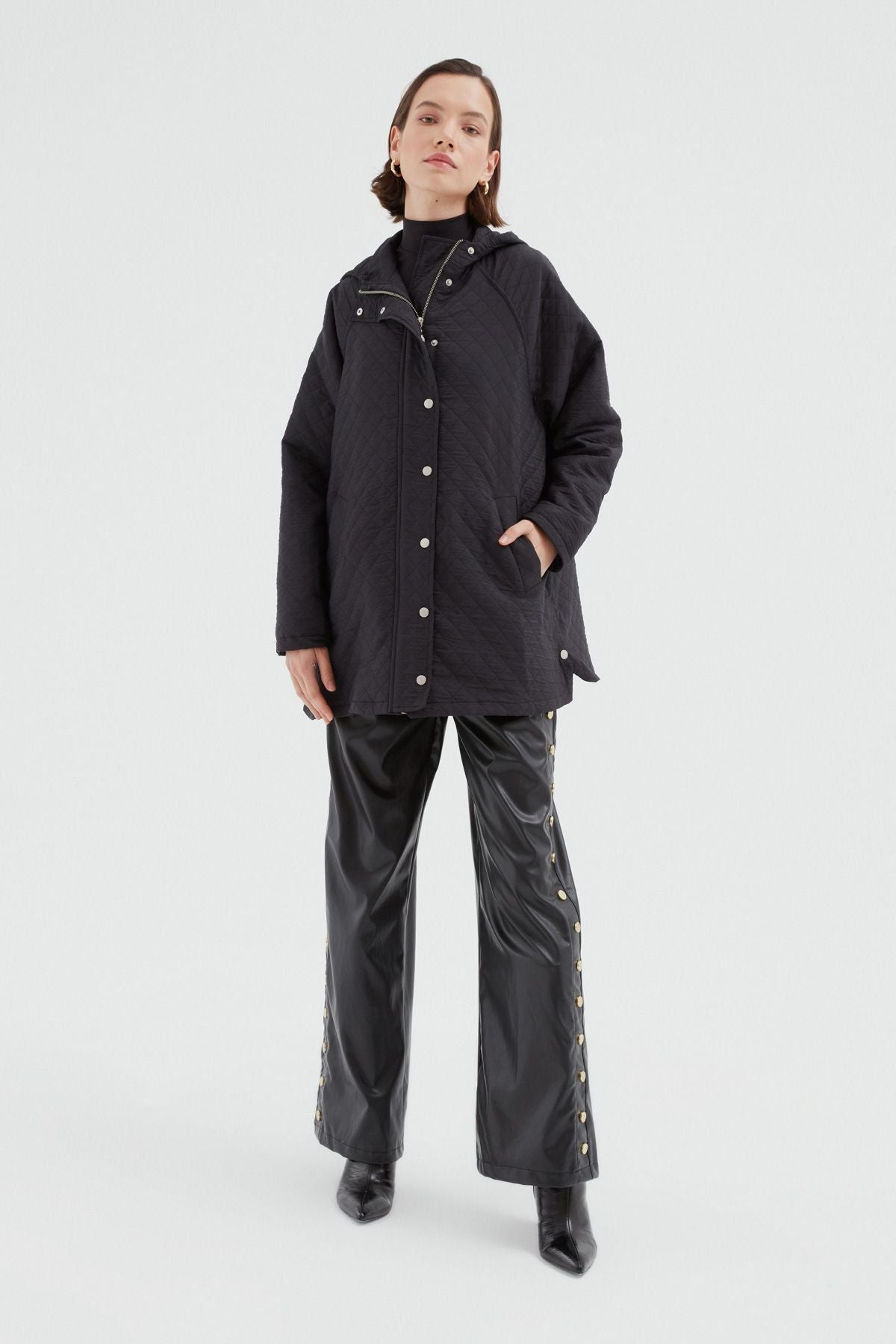 Oversize Kapitone Mont Siyah