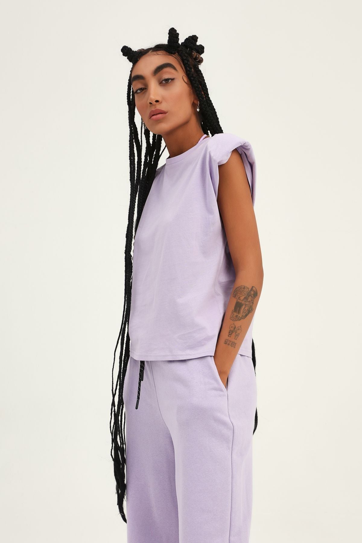Vatkalı Kolsuz Basic Tişört Lila