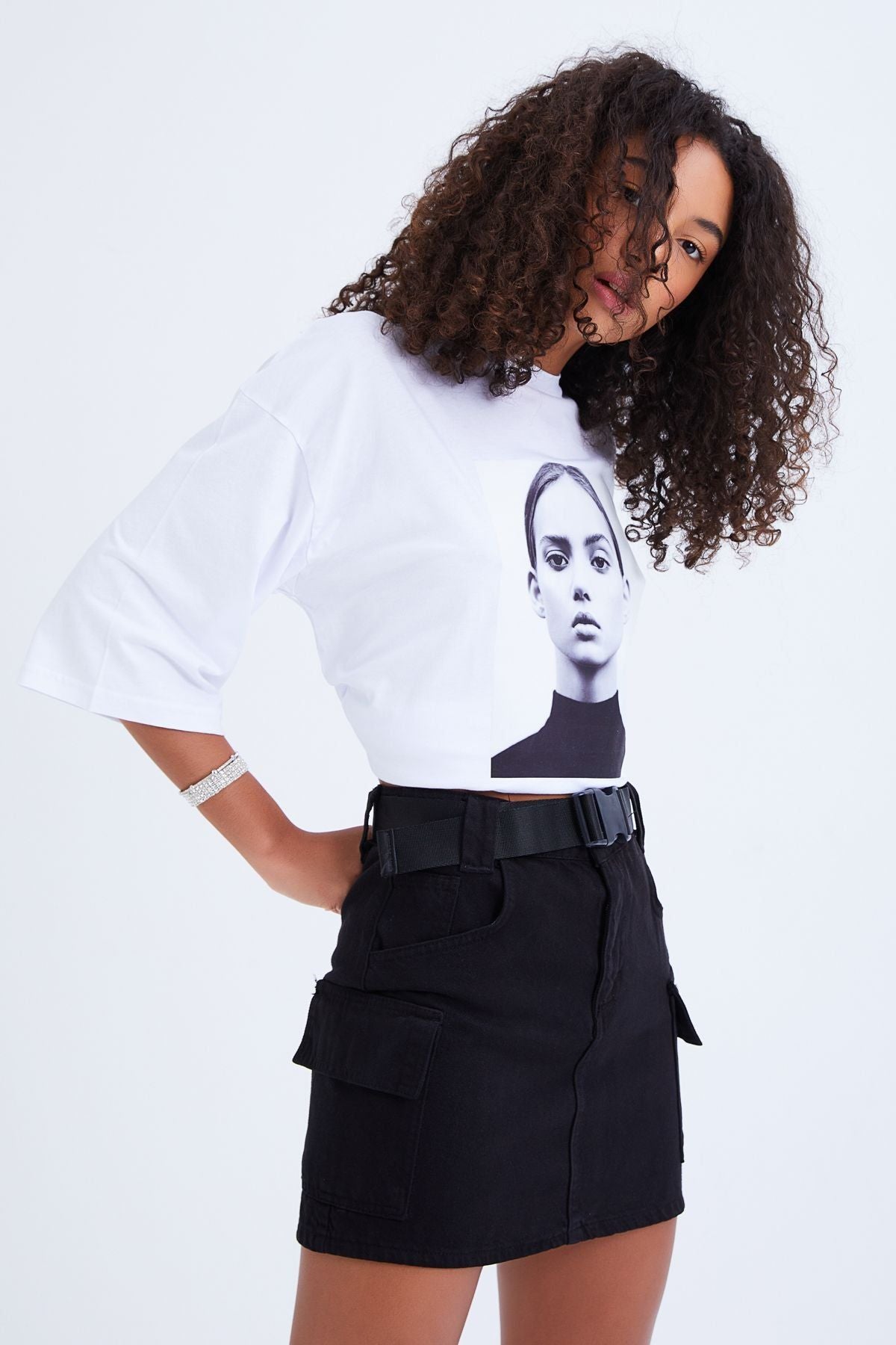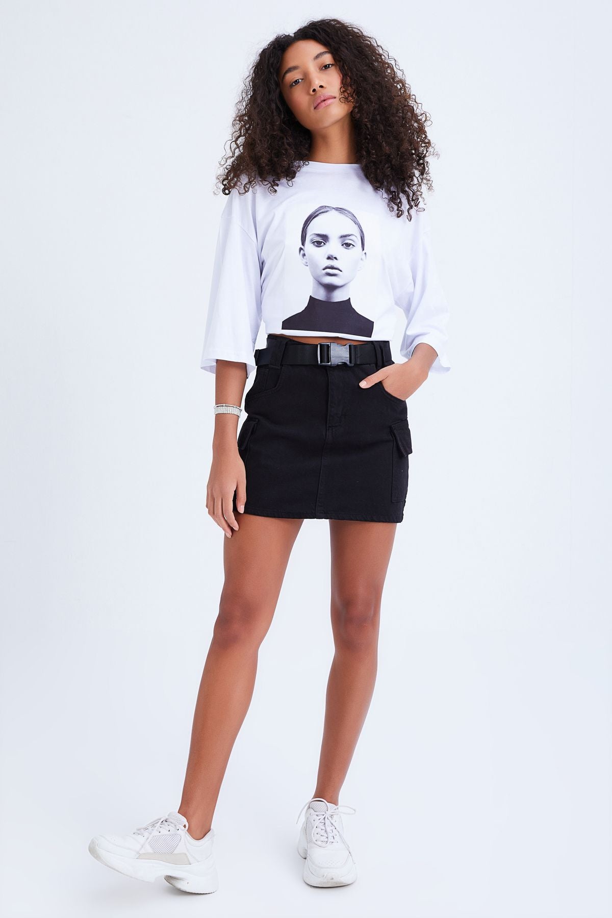Mini eteğe Quzu ile gelen spor bir yorum karşında. Kemer detayı ile öne çıkan kargo cepli mini etek, gün içerisinde yaratmak istediğin spor şıklığa keyifli bir gönderme yapıyor. Quzu eteğini basic t-shirtler ve spor ayakkabılar ile tamamlayarak tarzında konforu artırabilirsin.