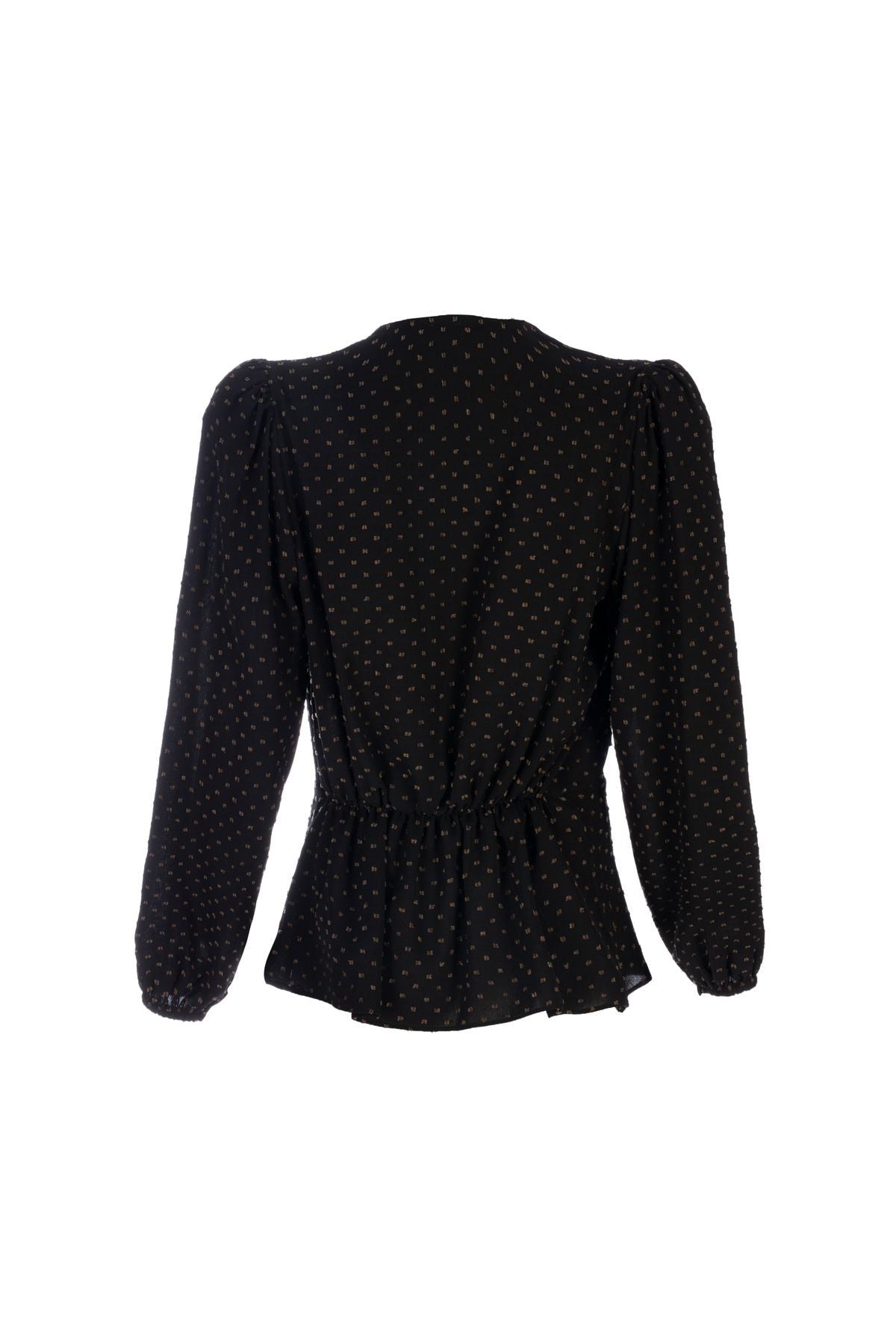 Omuz ve bilekte büzgü, bel hattında ise pile detaylarına sahip Puantiyeli Kruvaze Bluz, gece davetlerinizde dikkatleri üzerinize çekecek. Casaul görünümüzü tamamlamak için denim pantolon ile şıklığını tamamlayabilirsiniz.