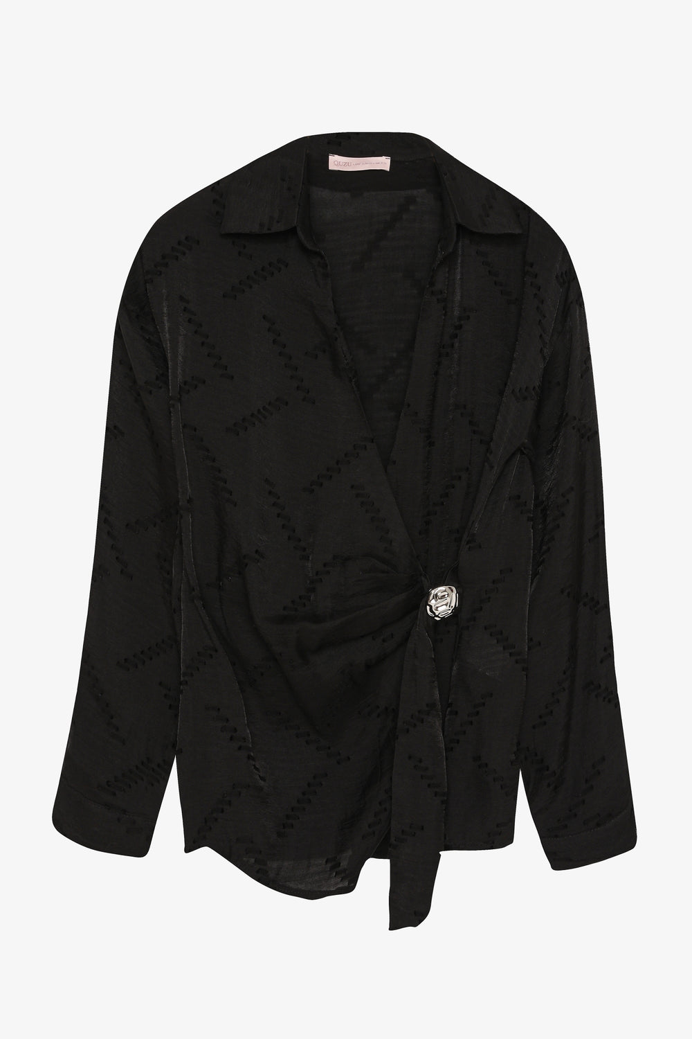 Toka Aksesuarlı Kruvaze Bluz Siyah