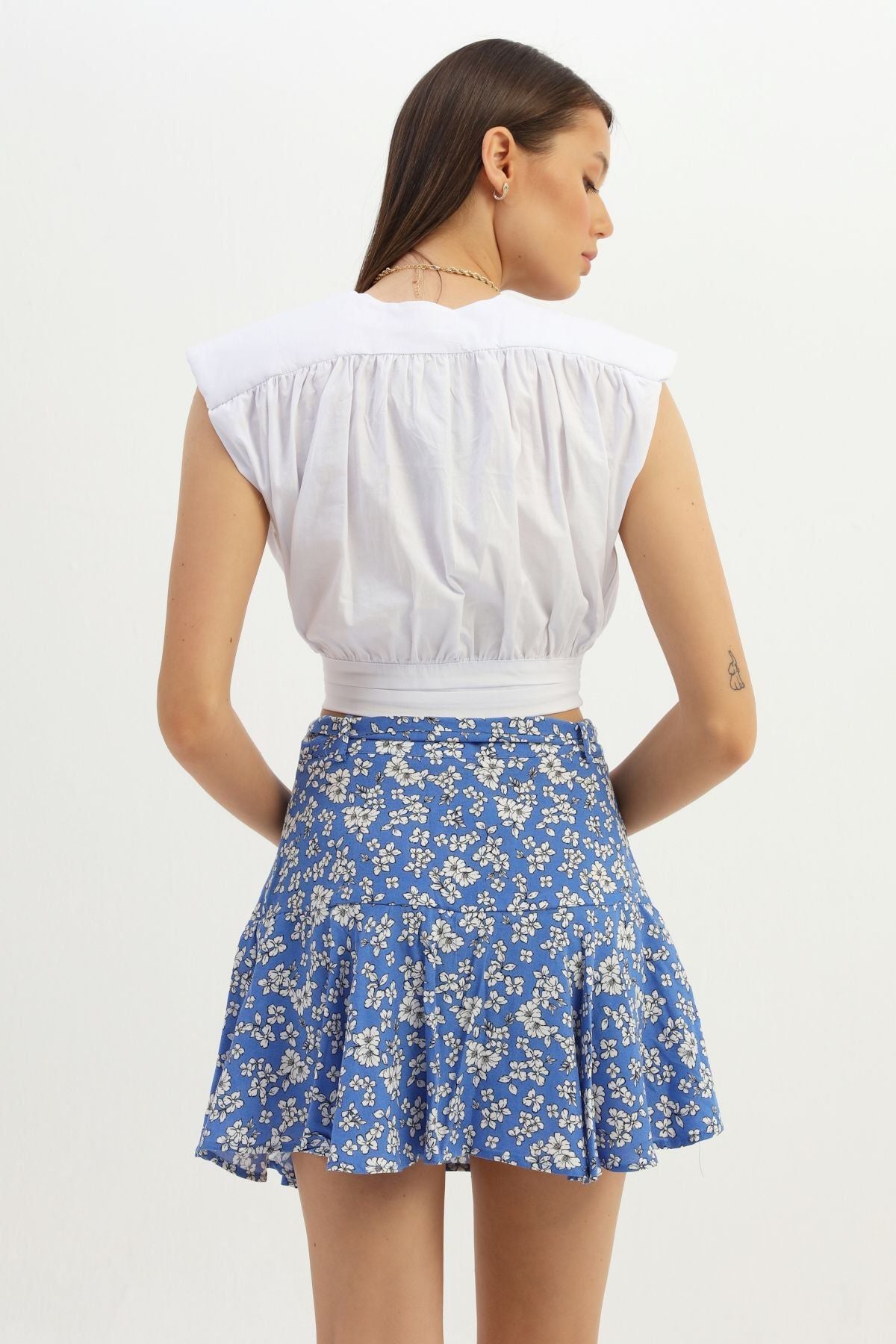 Vatkalı Yandan Bağlamalı Bluz Beyaz