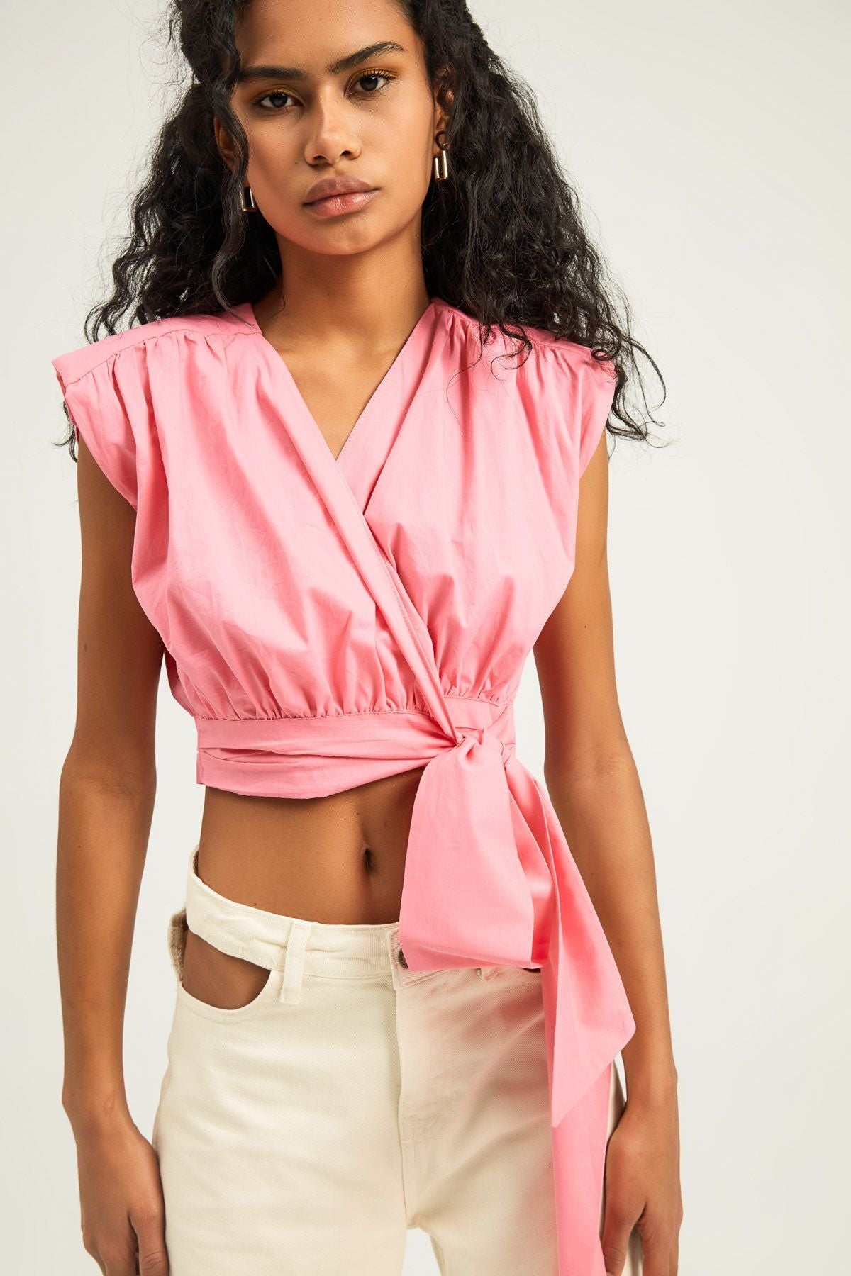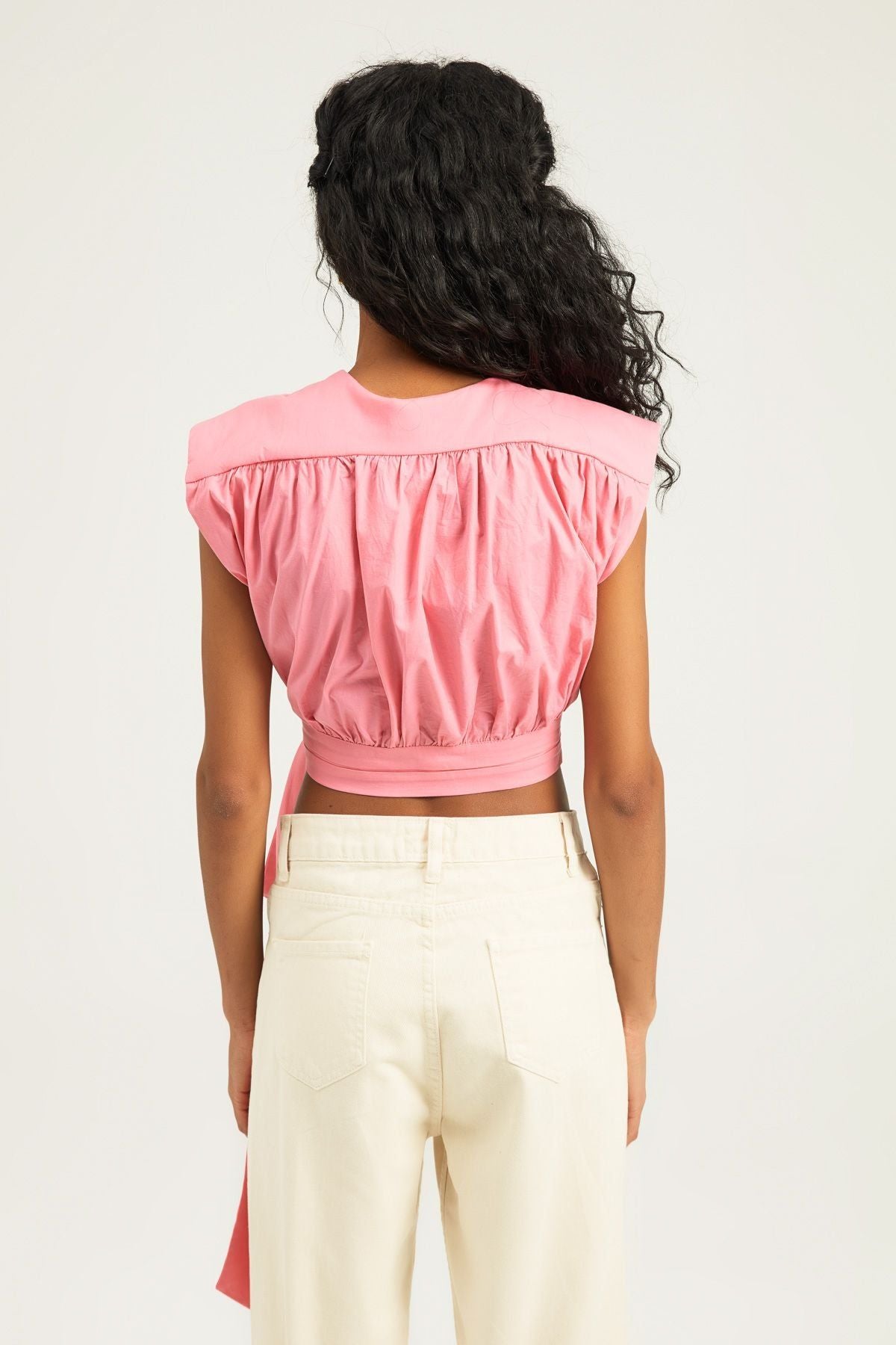 Vatkalı Yandan Bağlamalı Bluz Şeker Pembe