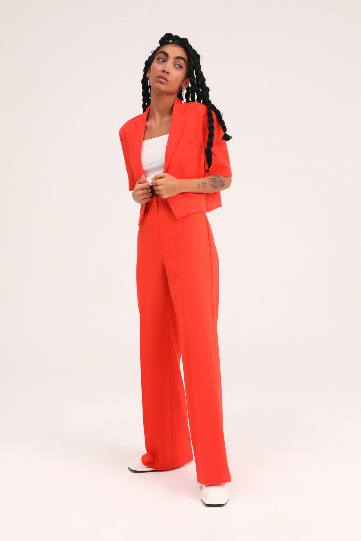 Yoğun ofis günlerinin baş kahramanı şimdi bol paça formuyla keşfedilmeyi bekliyor! Esnek yapısı ve bol paçasıyla adımlarını özgürleştirecek kumaş pantolon modeli dolabının yeni gözdesi olabilir! Spor ve şık kombinler için onu, crop top’larla ya da bluzlarla birleştirebilirsin. Daha ciddi görünümler için blazer’ı bu oyuna dahil edebilirsin.