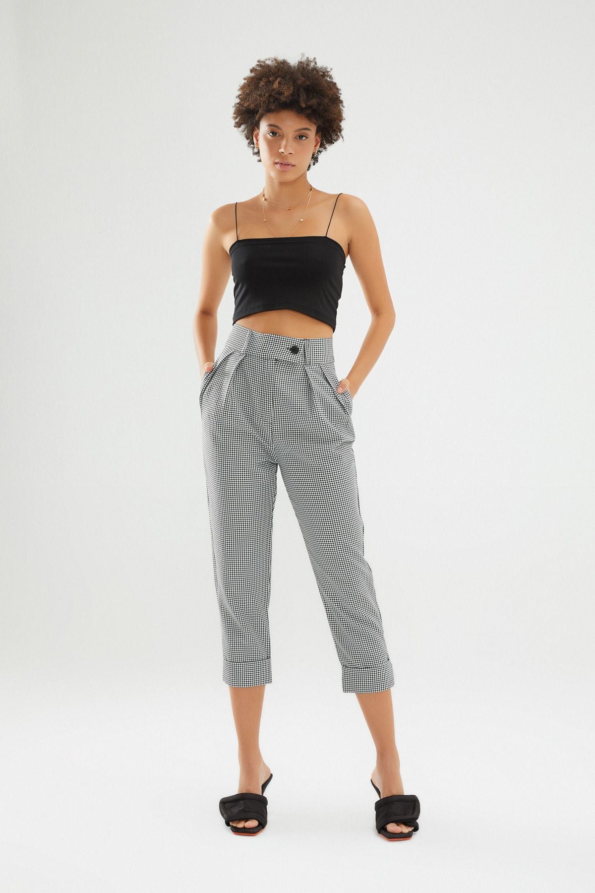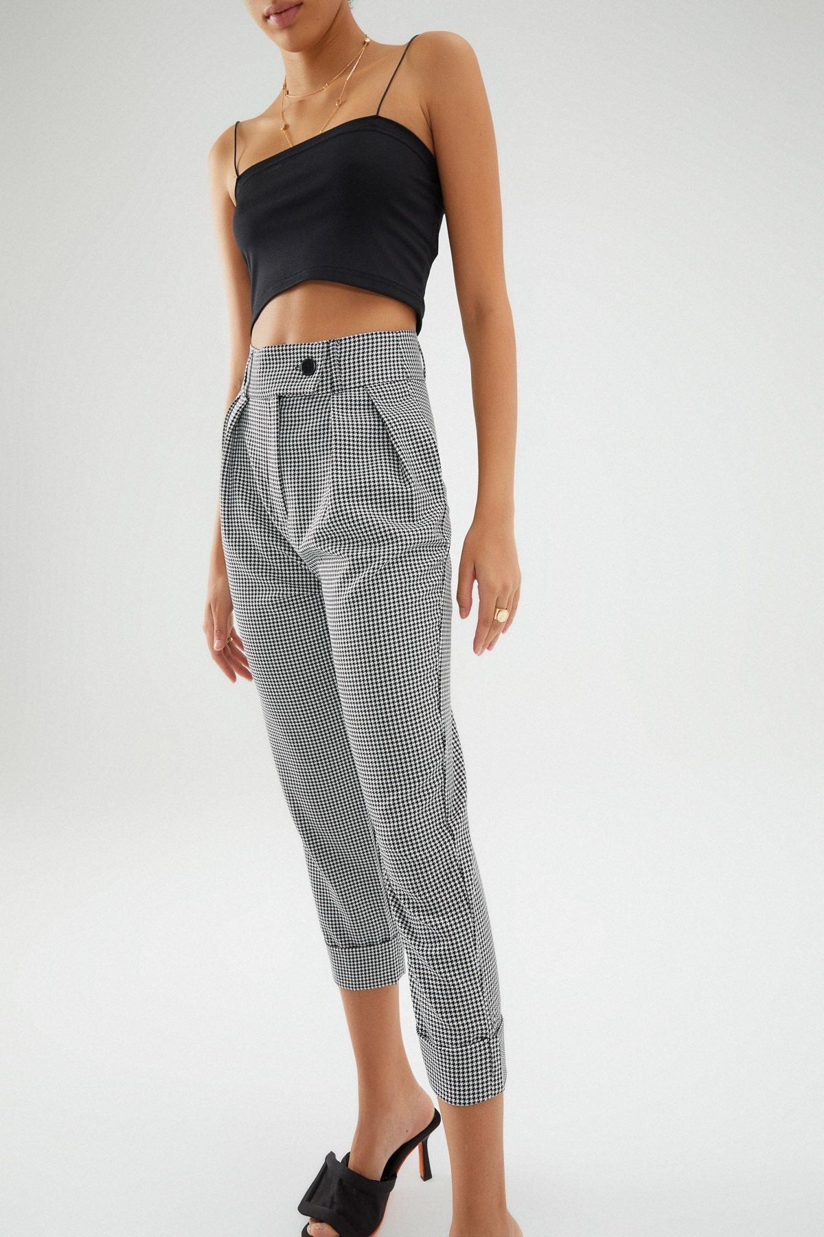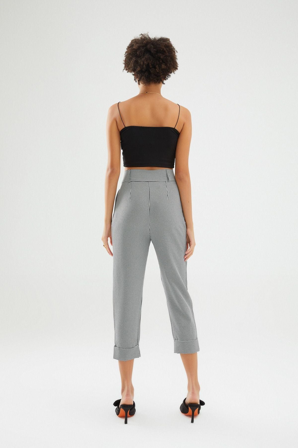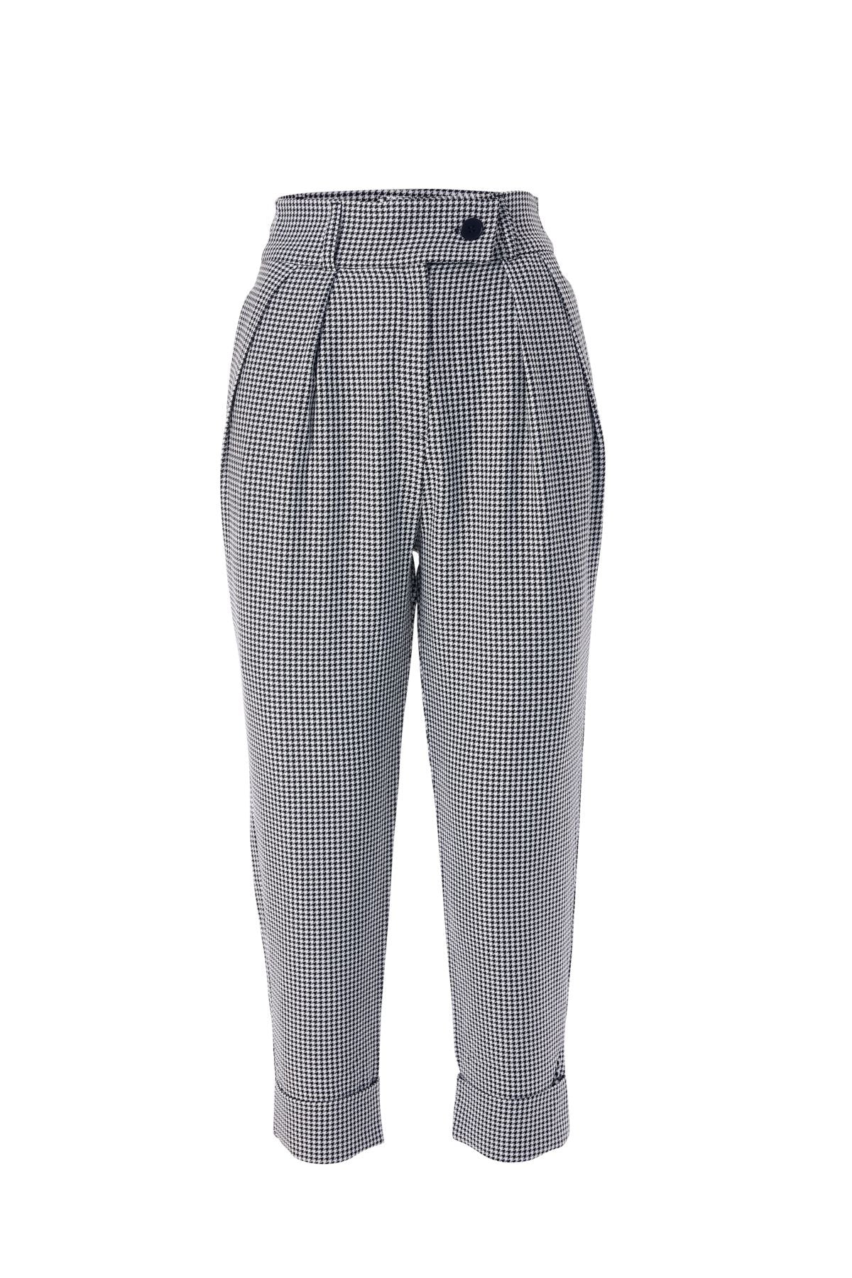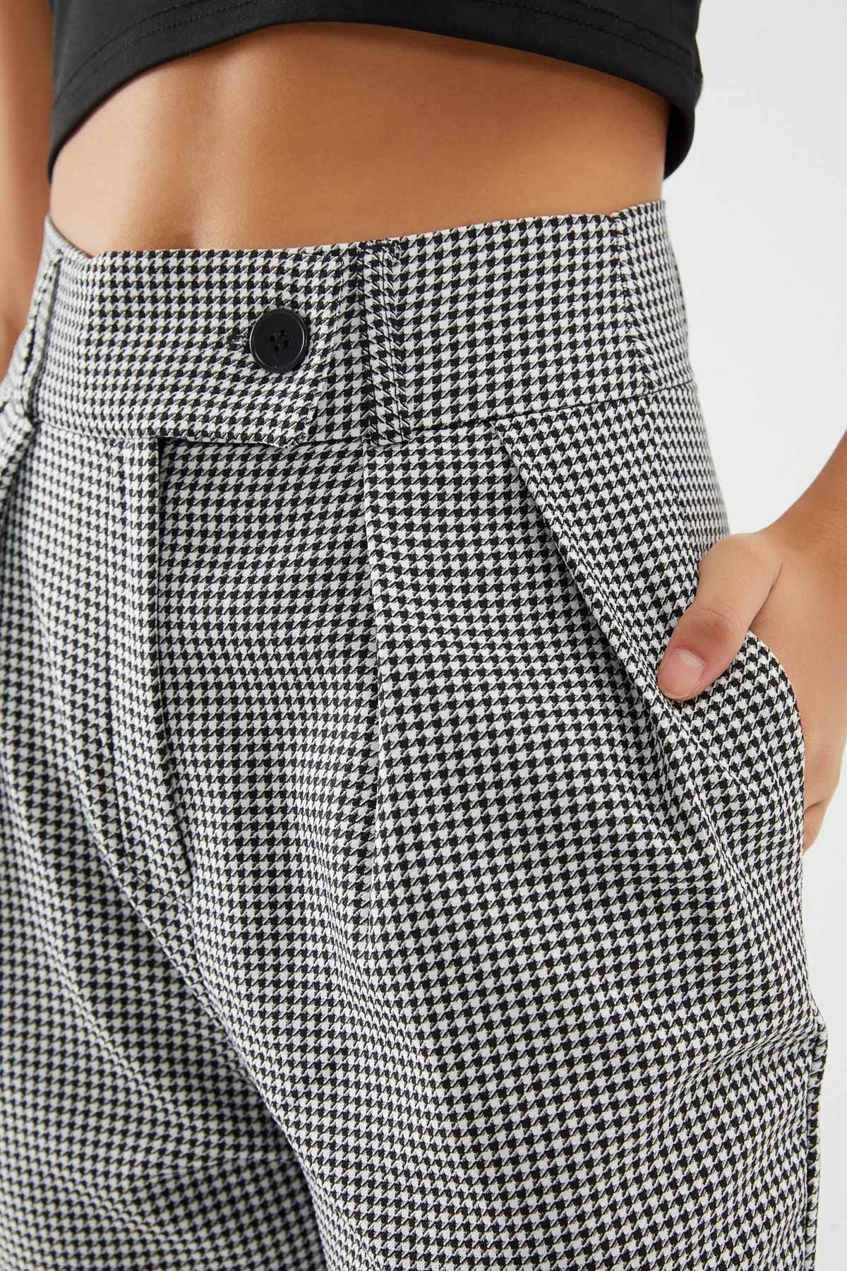 Çizgili Duble Paça Pantolon Siyah