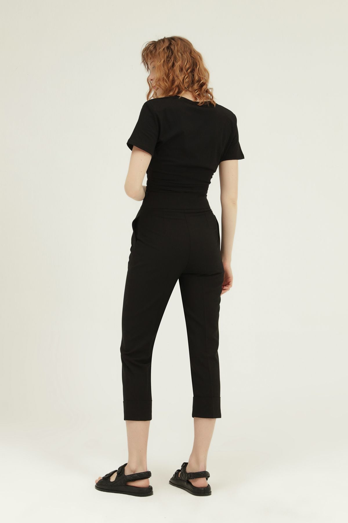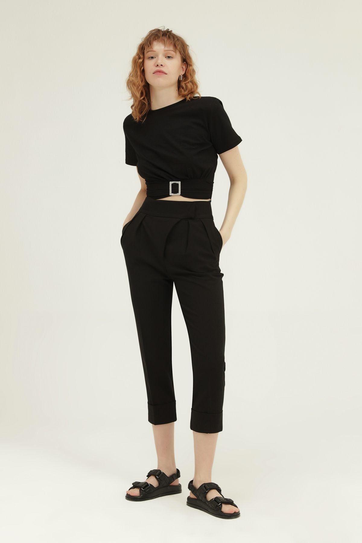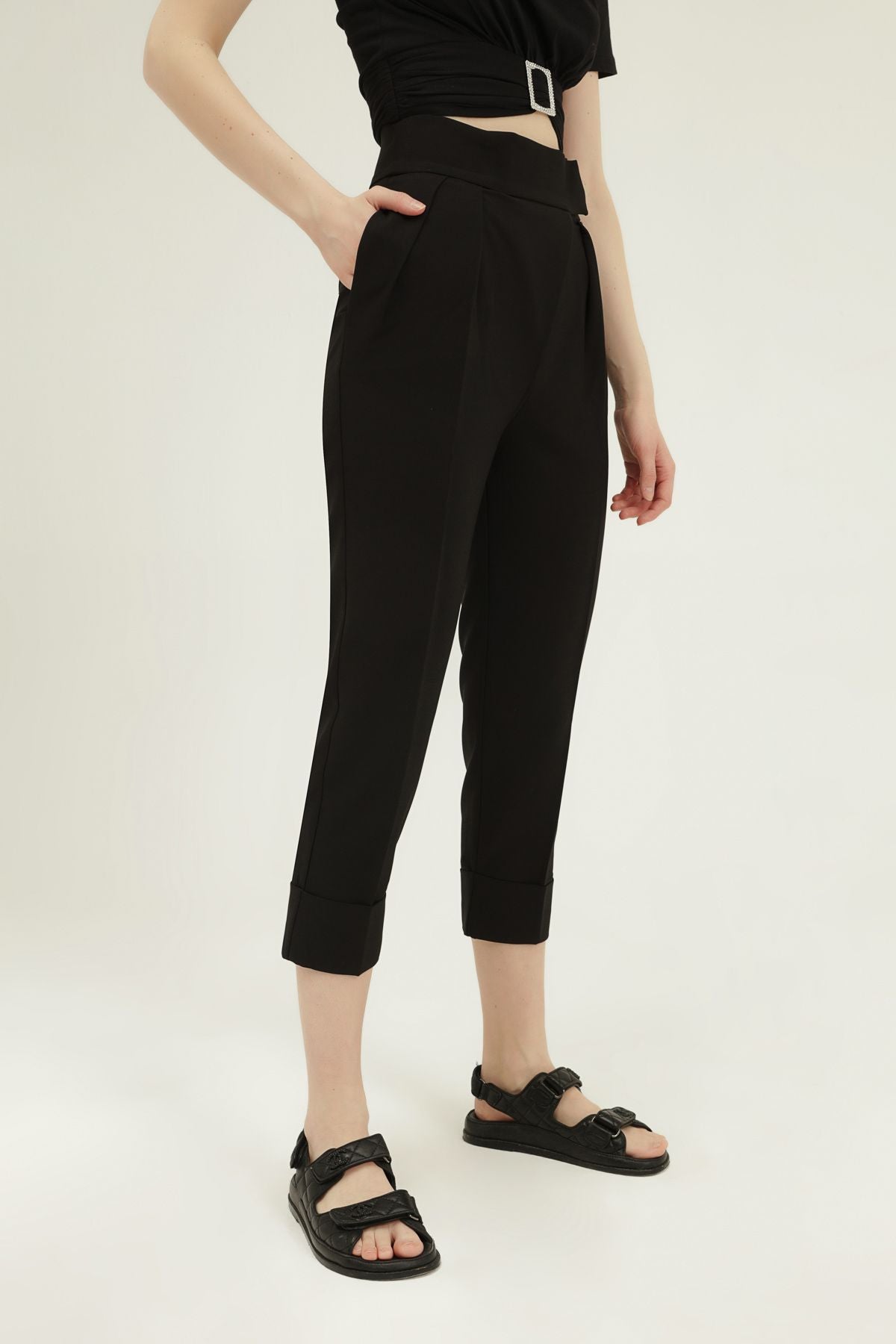 Kruvaze bel detayı ile ön plana çıkan duble paça pantolon modeli, günlük kombinlerinde ve ofis şıklığında farklılık arayanların kurtarıcısı olmaya aday! Kruvaze gelen bel detayına vurgu yapmak için crop gömleklerden ya da tişörtlerden yardım alabilirsin. Trend alarmı veren kruvaze bel detaylı duble paça pantolon senin olmayı bekliyor!