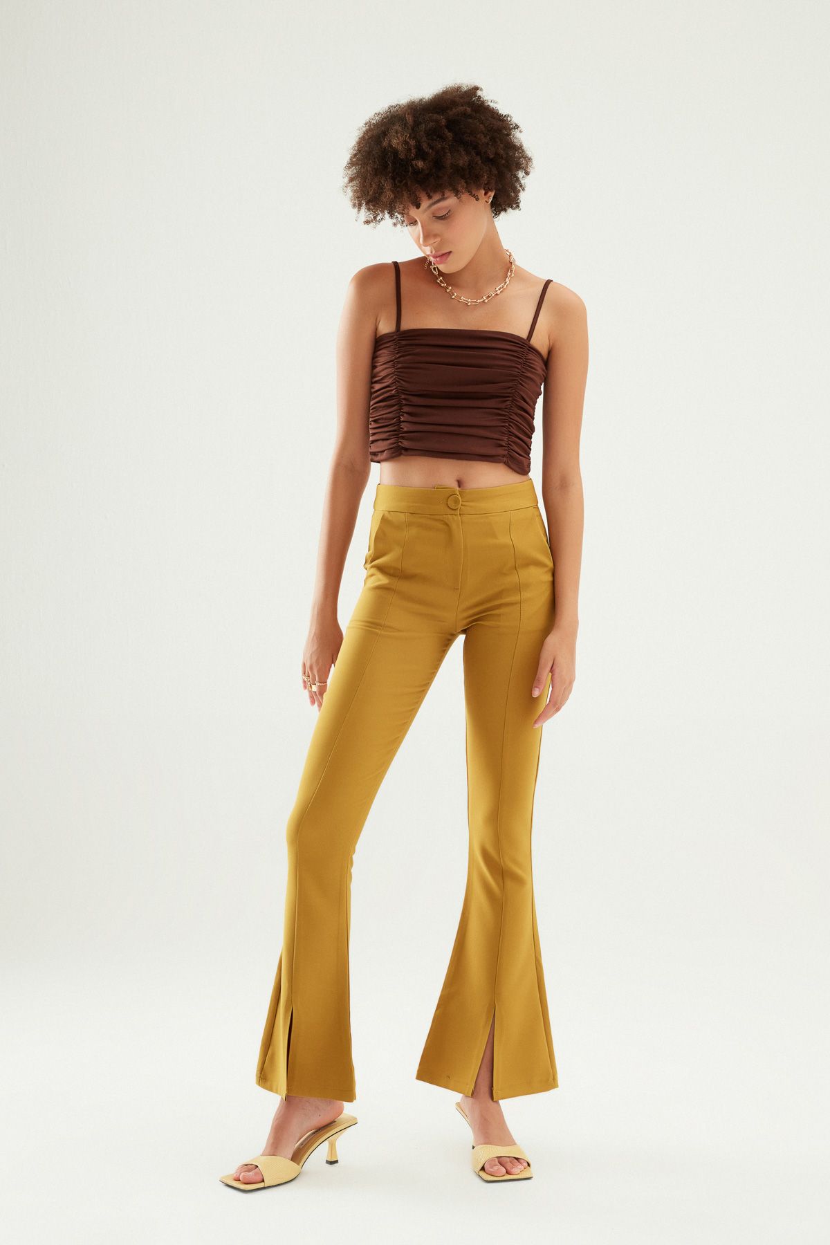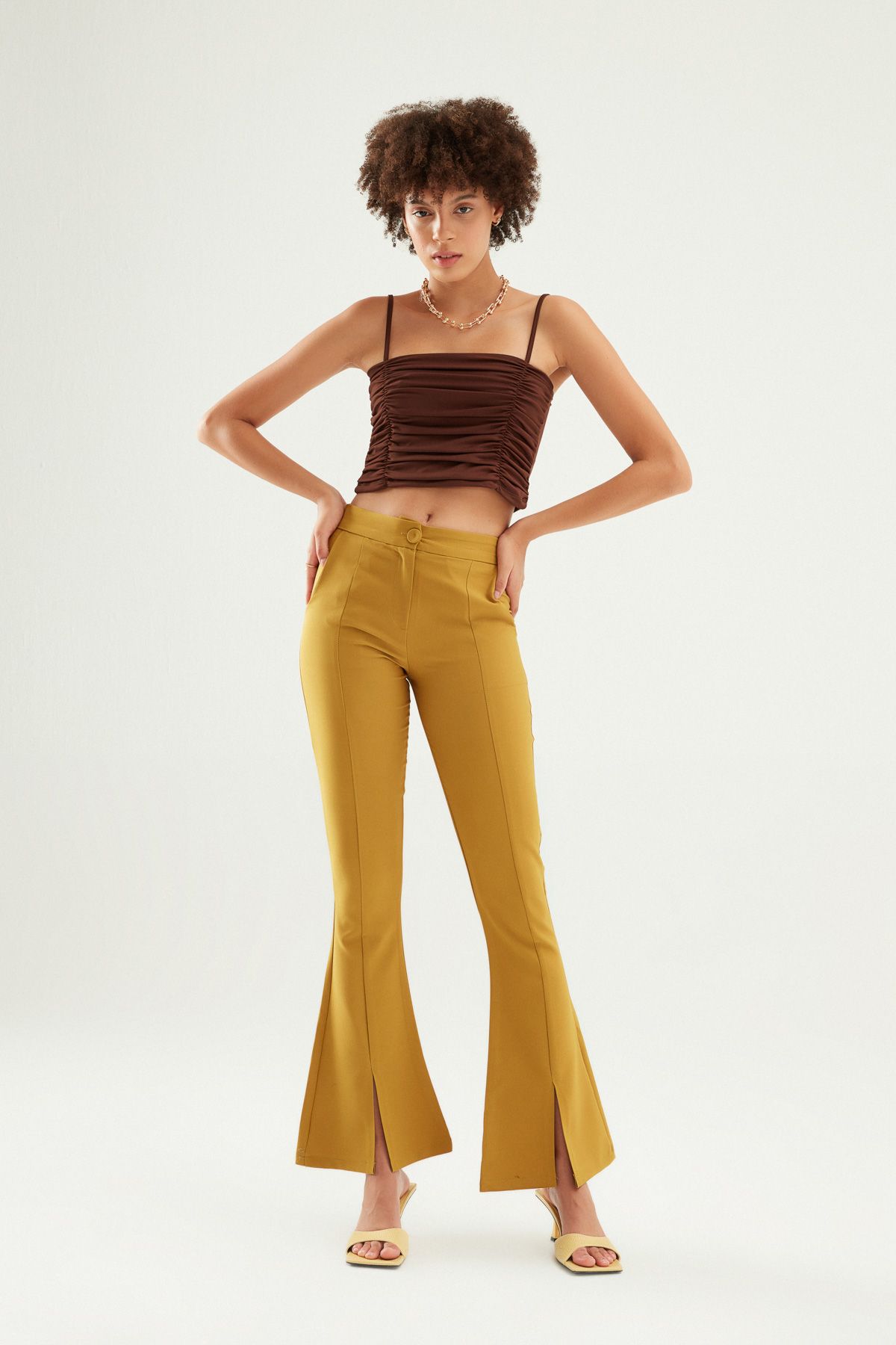 İspanyol Paça Yüksek Bel Pantolon Olive