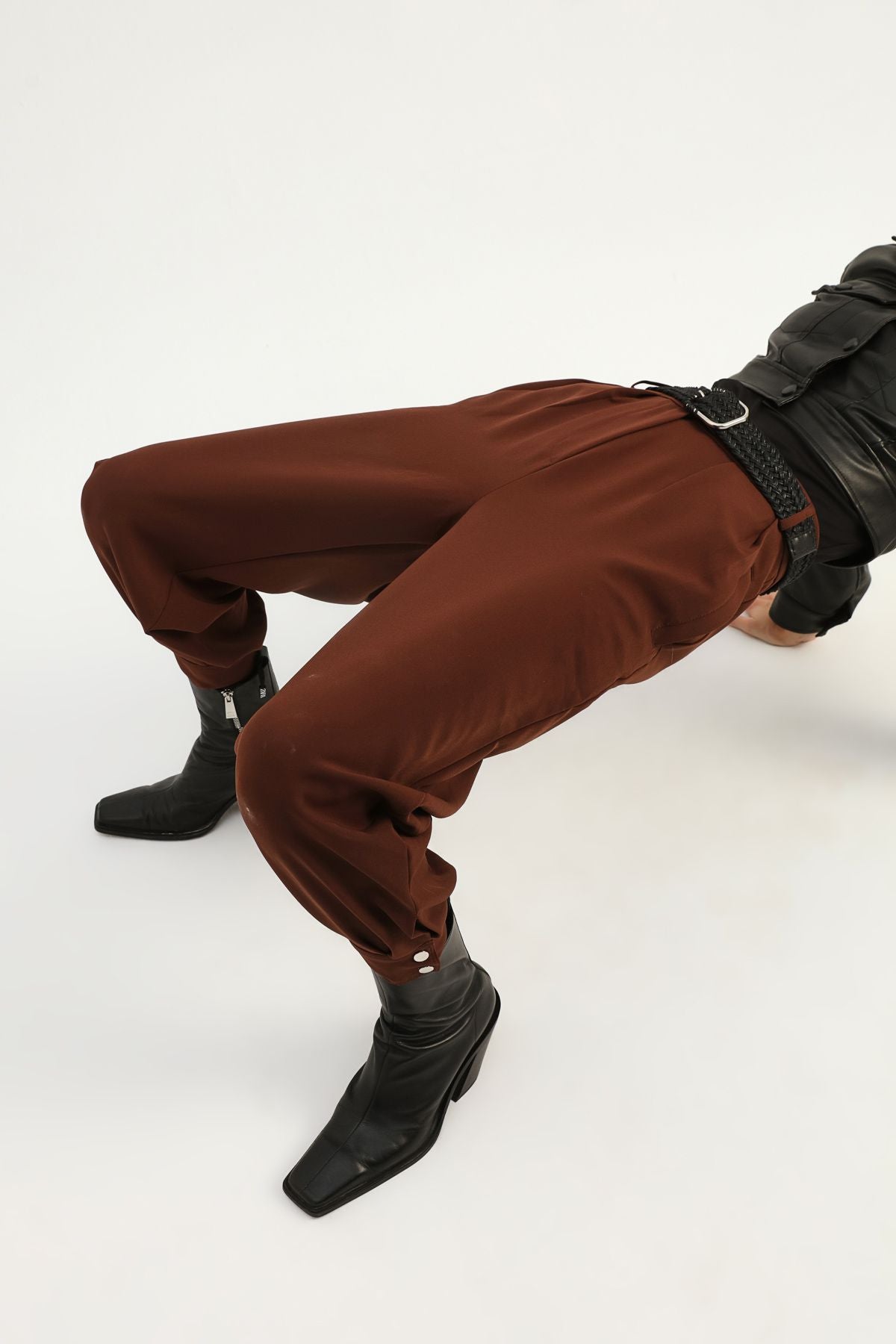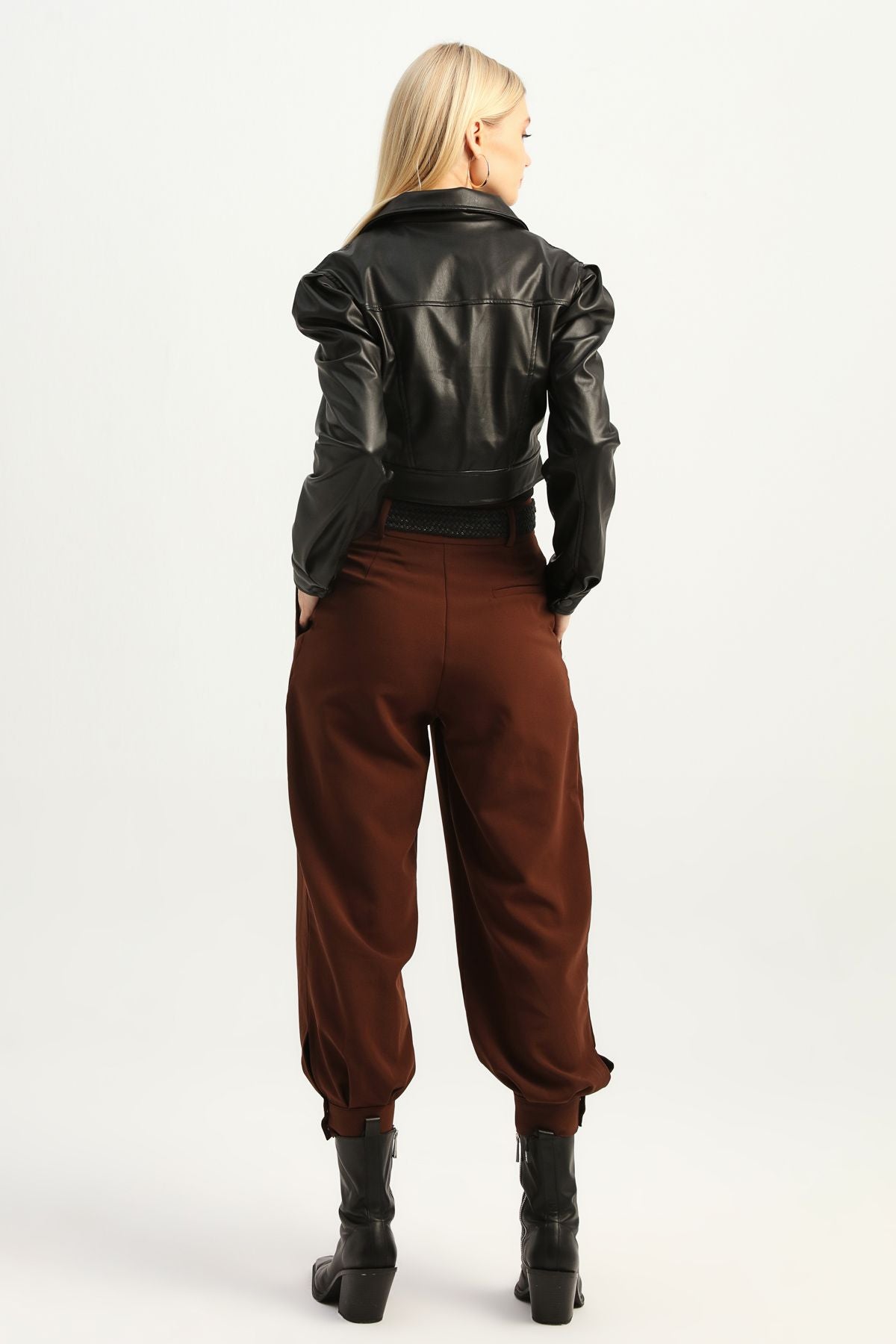 Kemerli Paçası Çıtçıtlı Pantolon Koyu Kahve