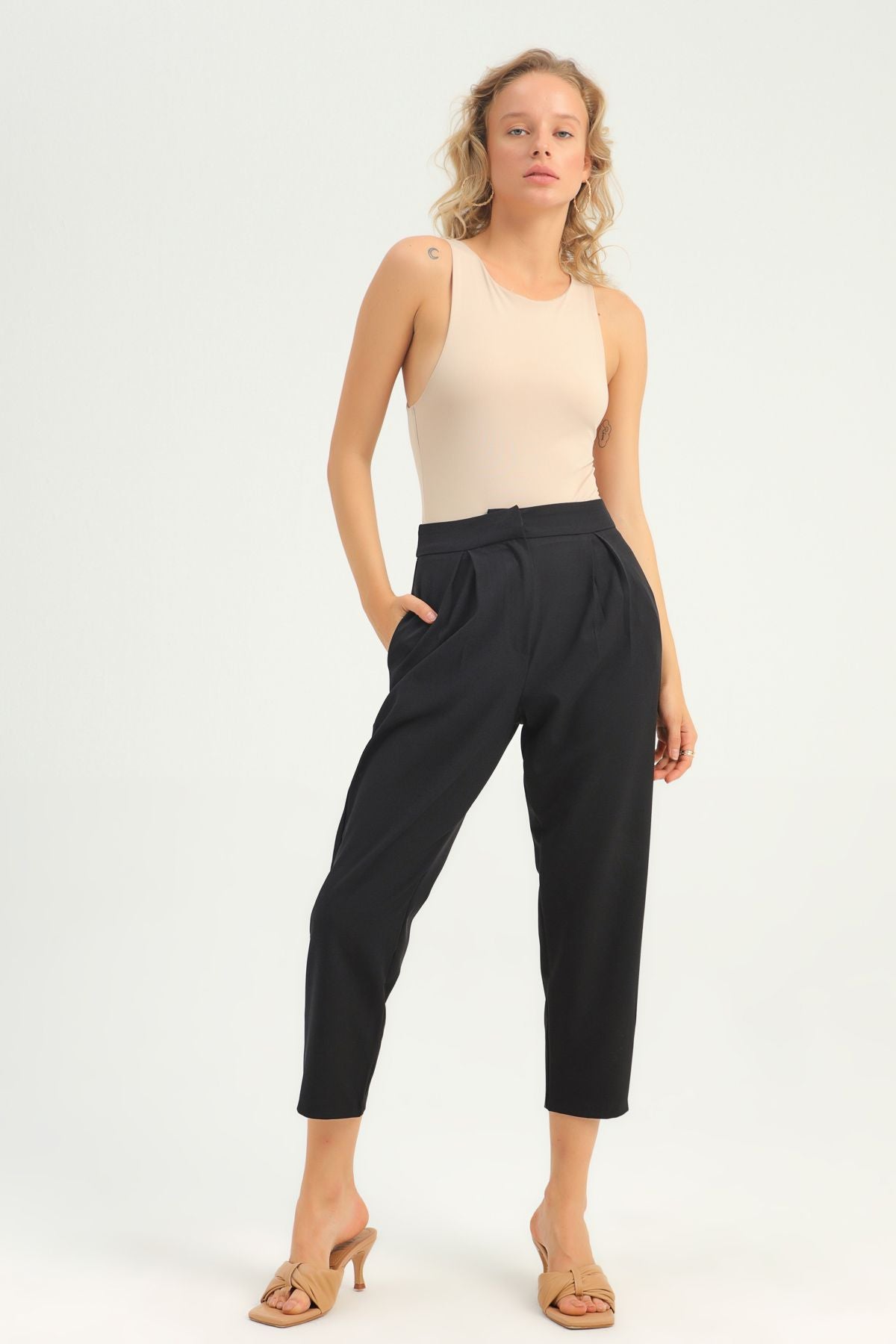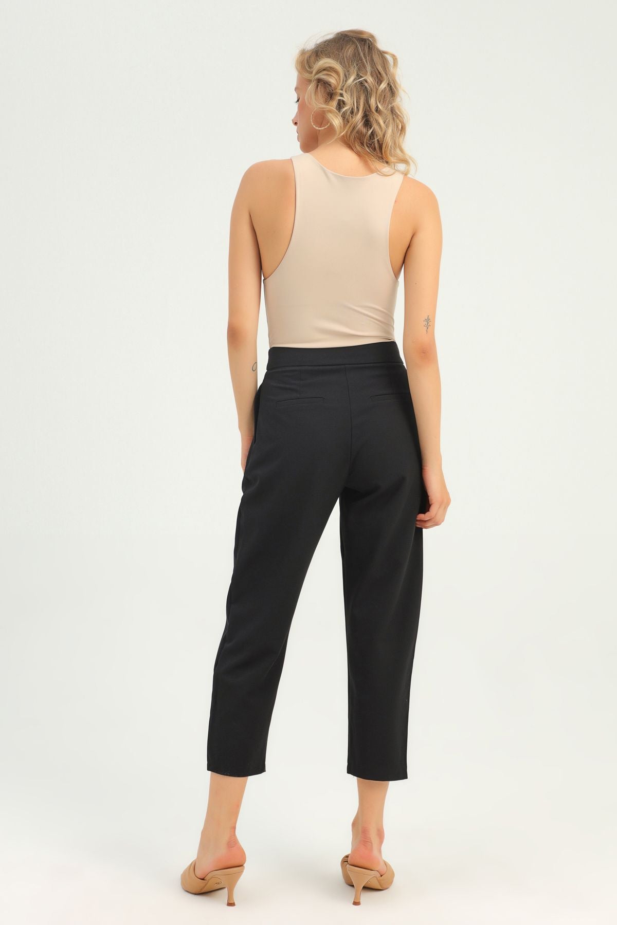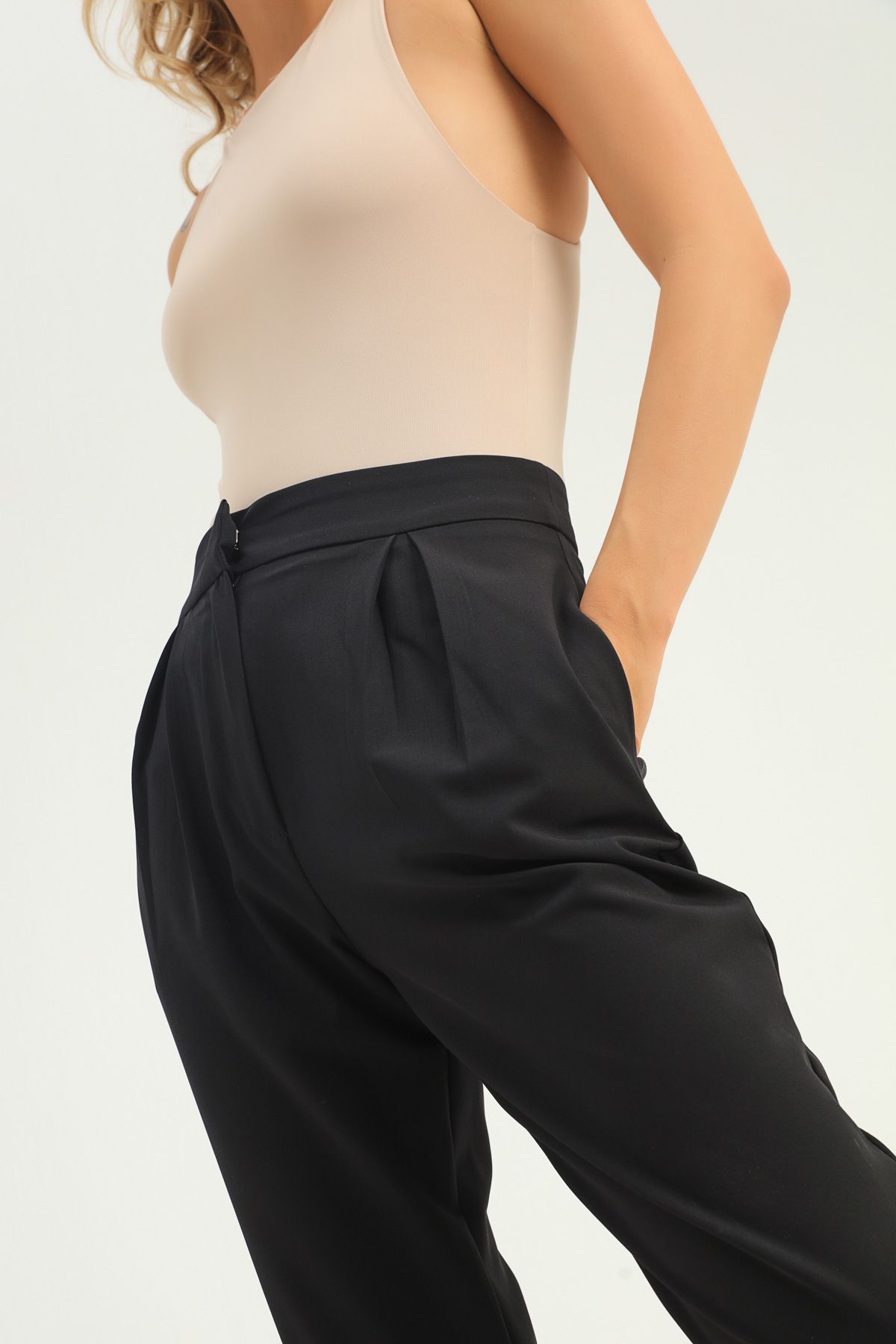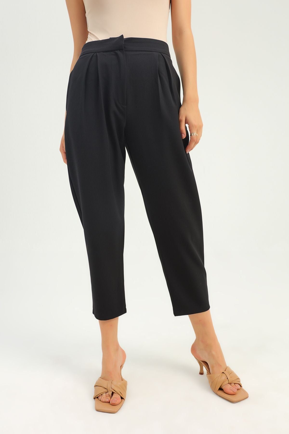Pileli Yüksek Bel Pantolon Siyah