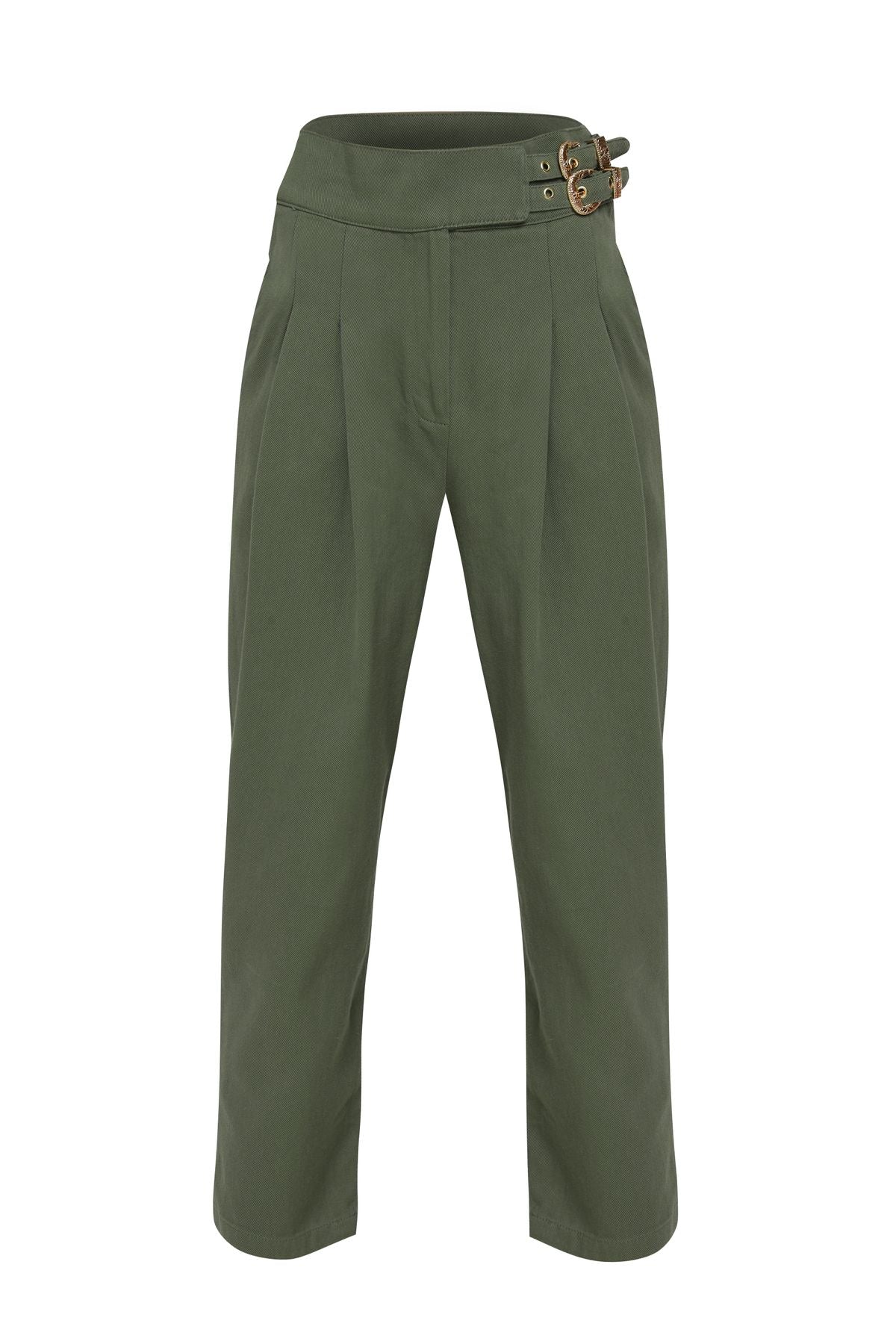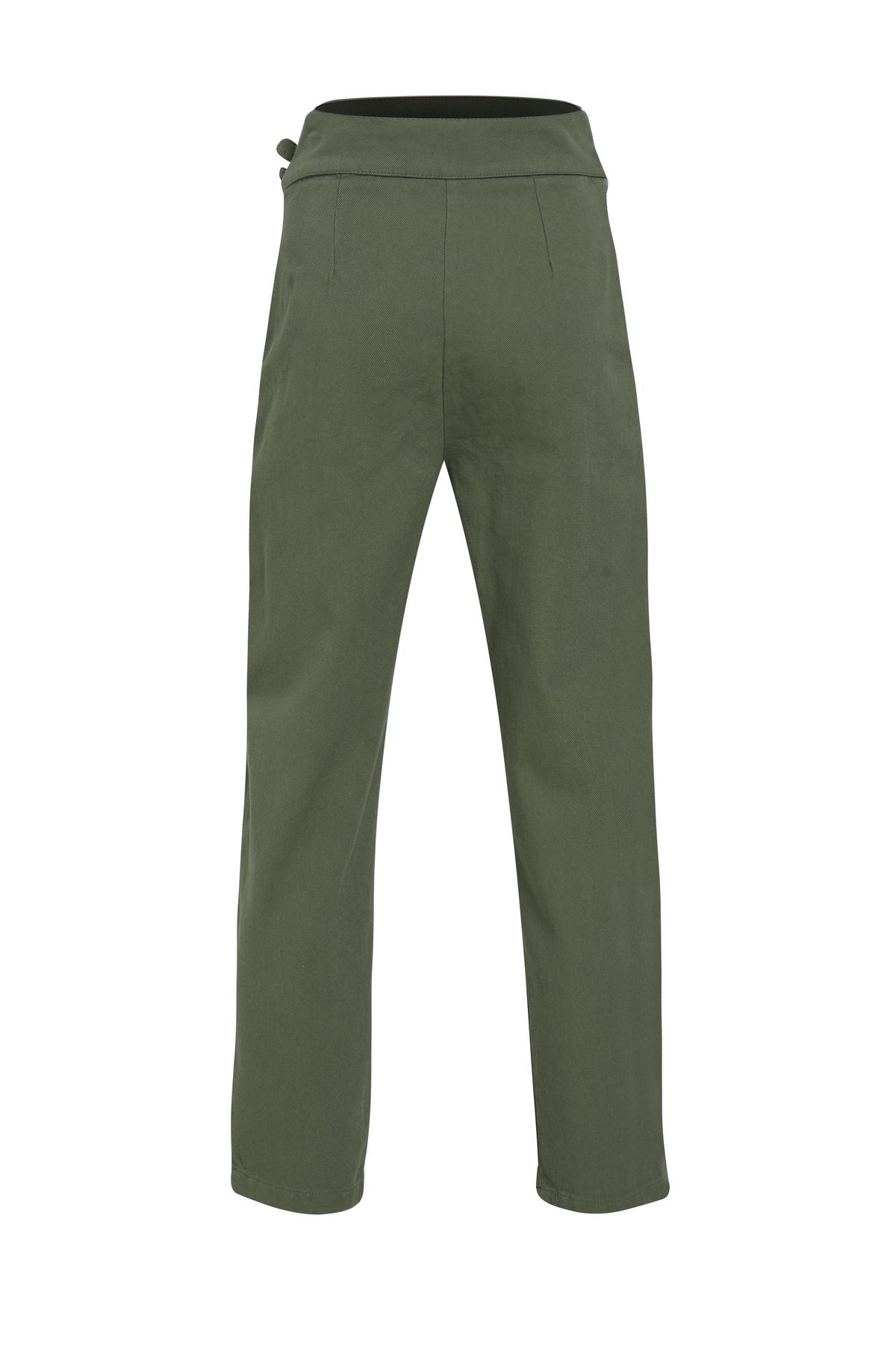 Tokalı Gabardin Yüksek Bel Pantolon Haki