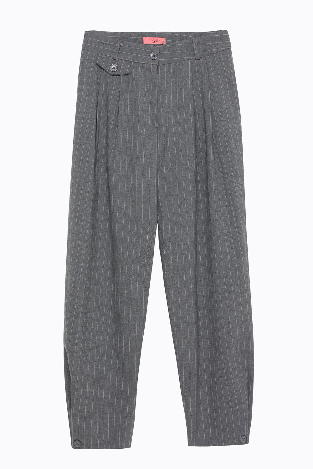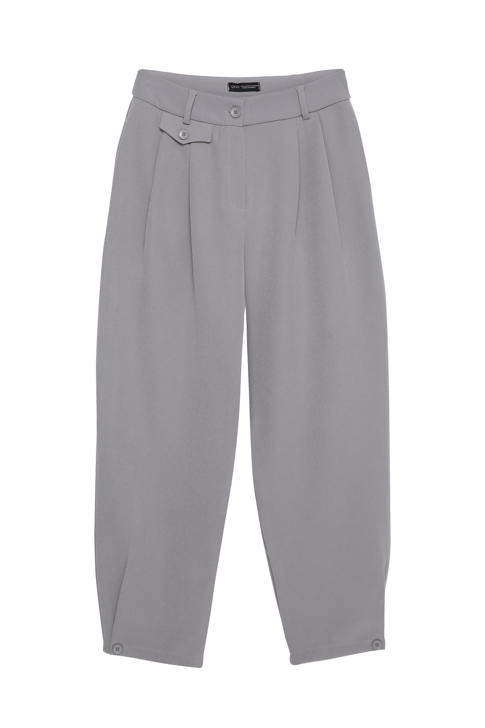 Paçası Düğme Detaylı Yüksek Bel Pantolon Gri