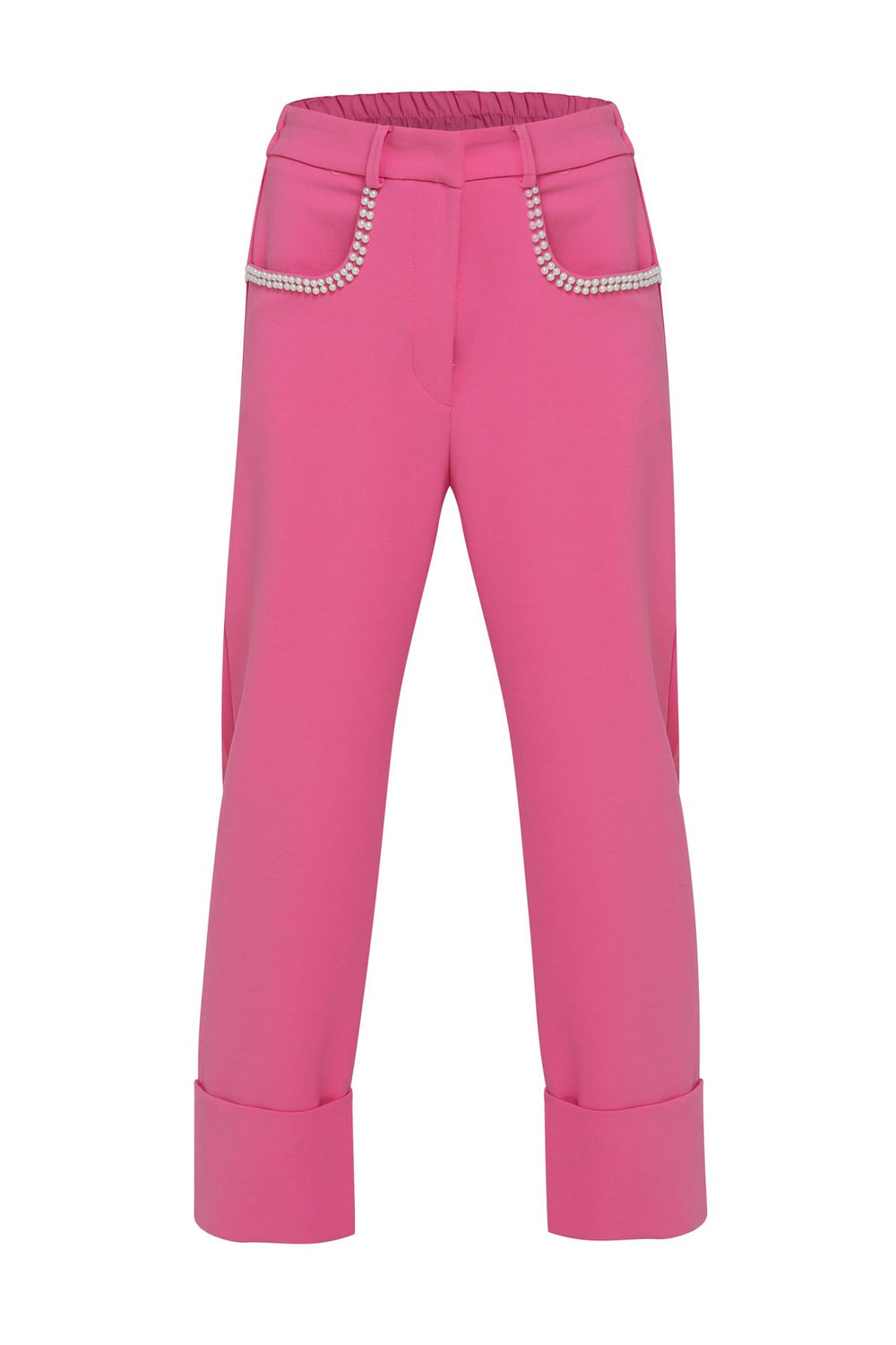 İnci Detaylı Duble Paça Pantolon Fuşya