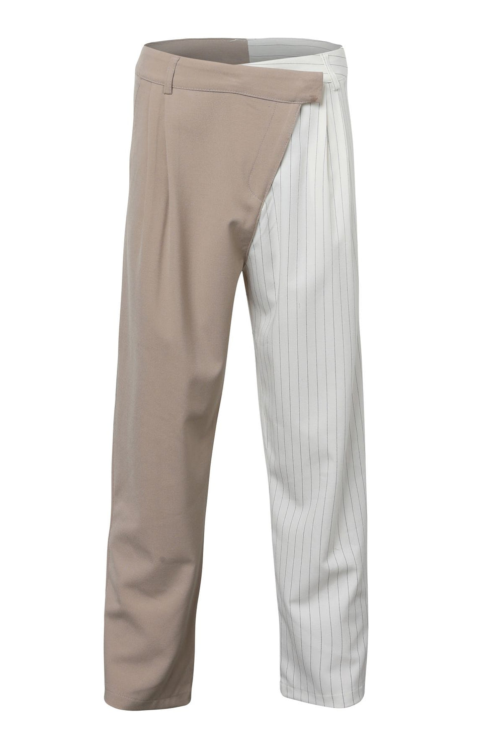 2 Renkli Çizgili Kumaş Pantolon Bej