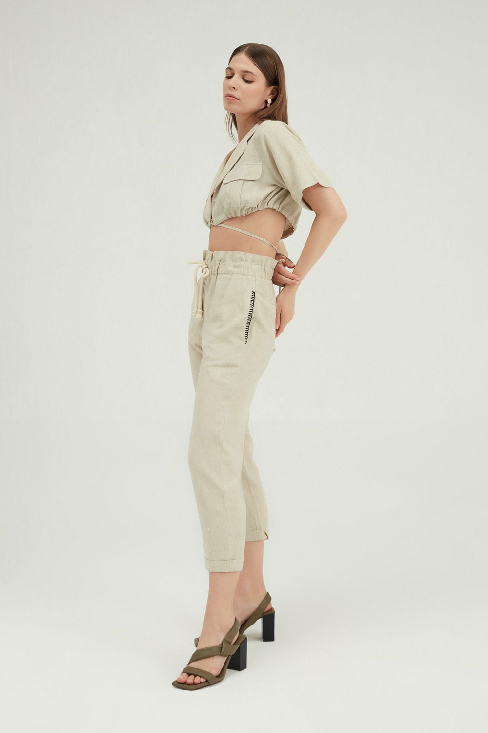 Beli Fırfırlı Keten Pantolon Naturel