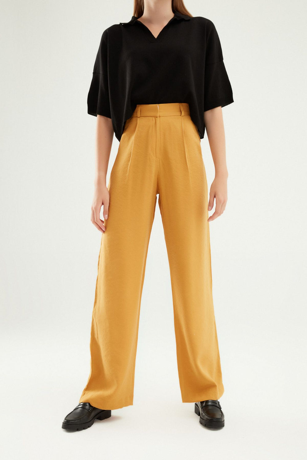 Yüksel Bel Bol Paça Pantolon Hardal