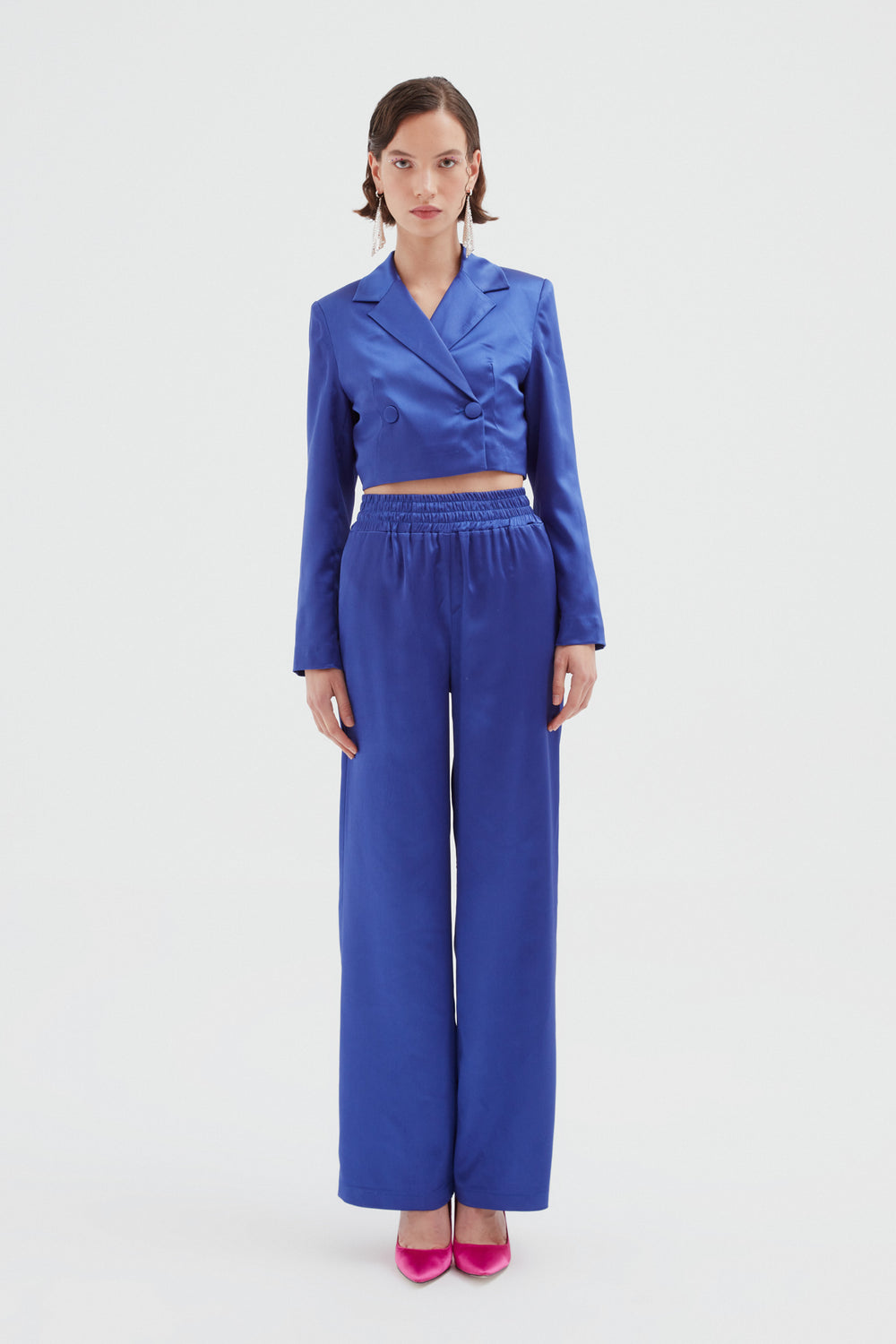 Beli Lastikli Saten Pantolon Fuşya