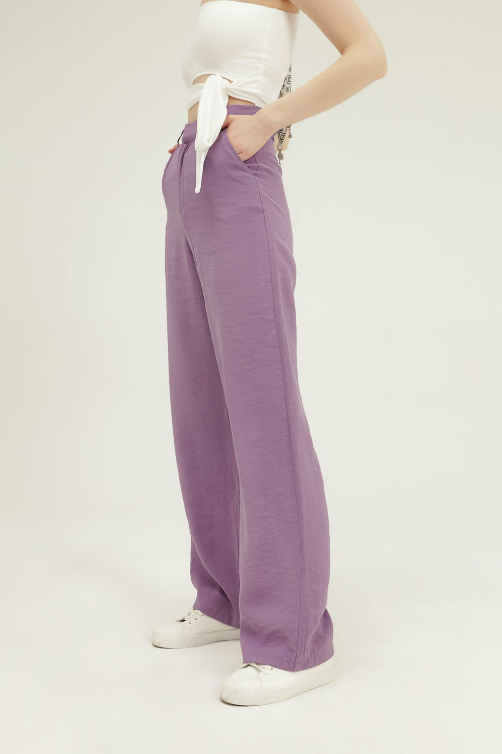 Yüksel Bel Bol Paça Pantolon Lila