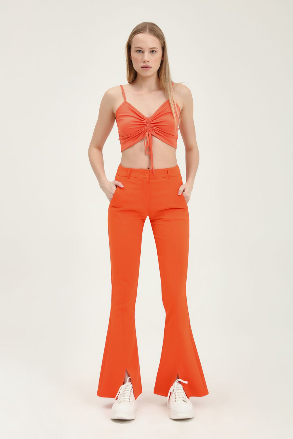 İspanyol Paça Yüksek Bel Pantolon Turuncu