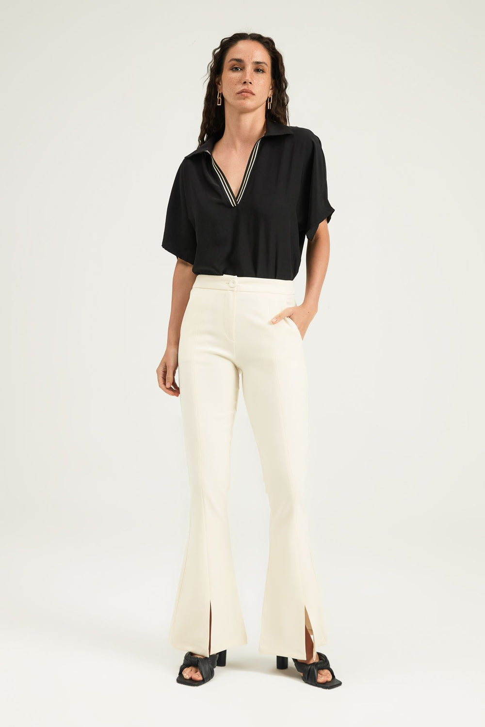 İspanyol Paça Yüksek Bel Pantolon Siyah