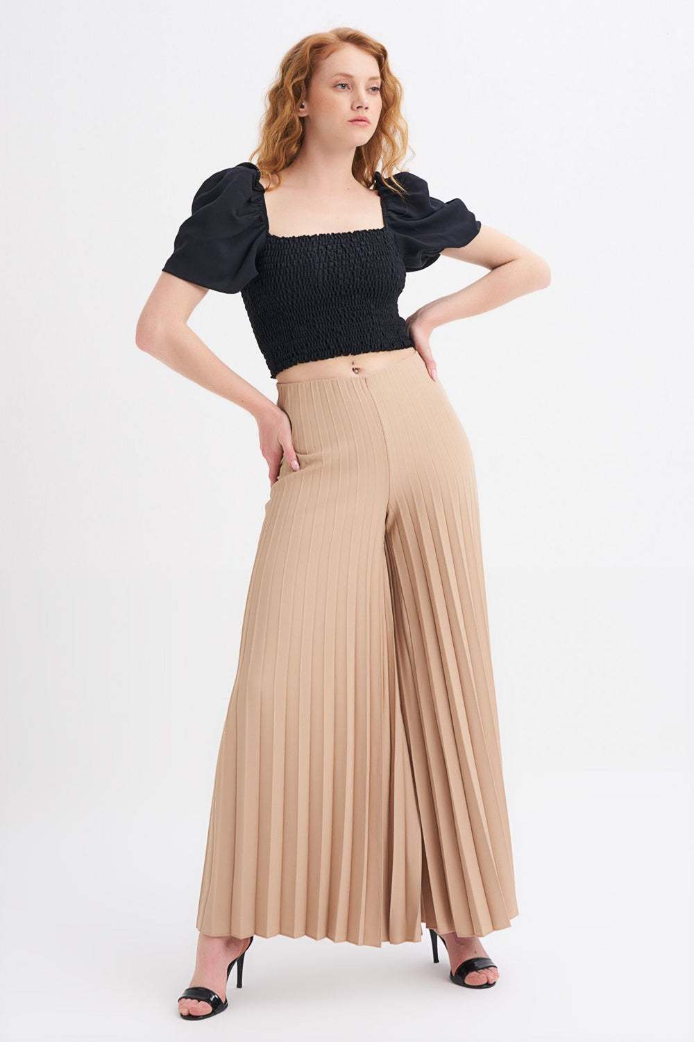 Piliseli Pantolon Koyu Bej
