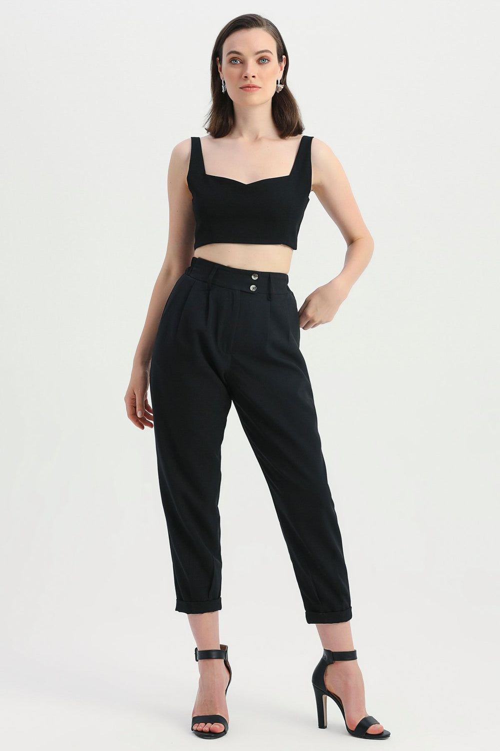 Yüksek Bel Kemerli Pantolon Siyah