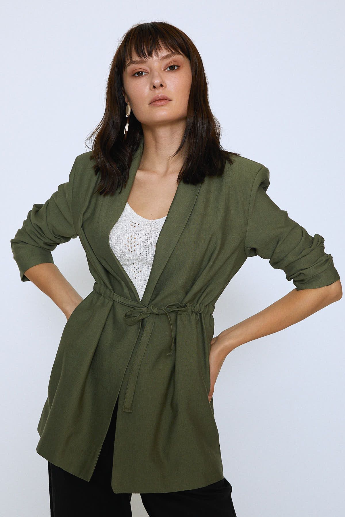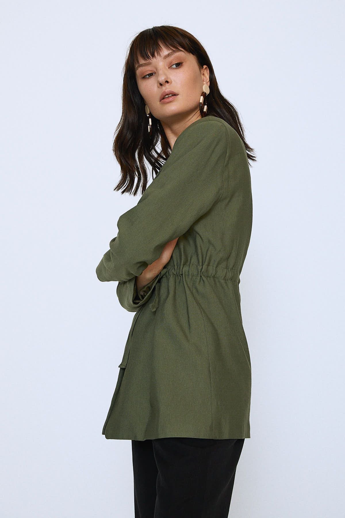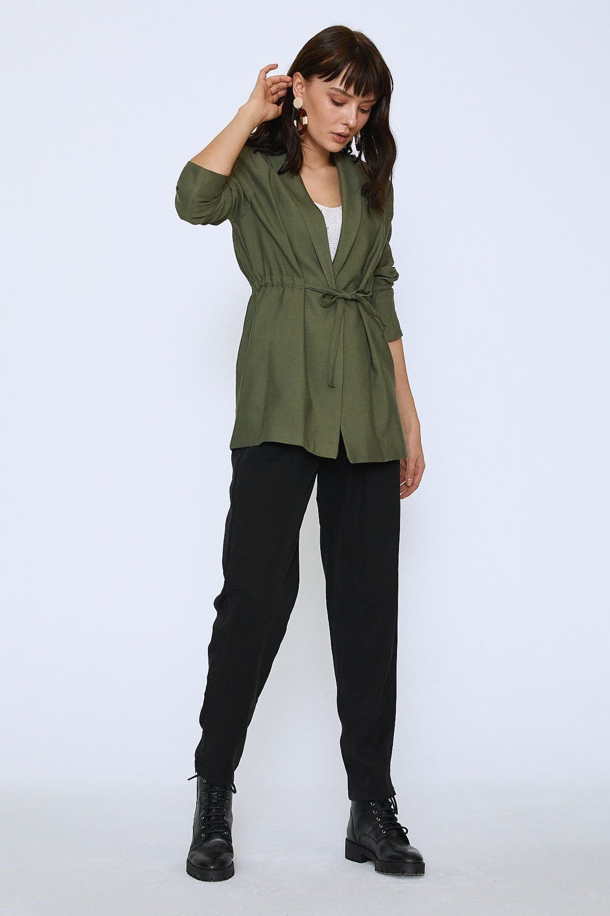 Beli Bağlamalı Ceket Haki