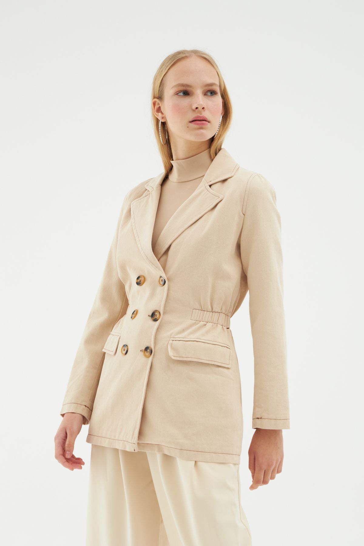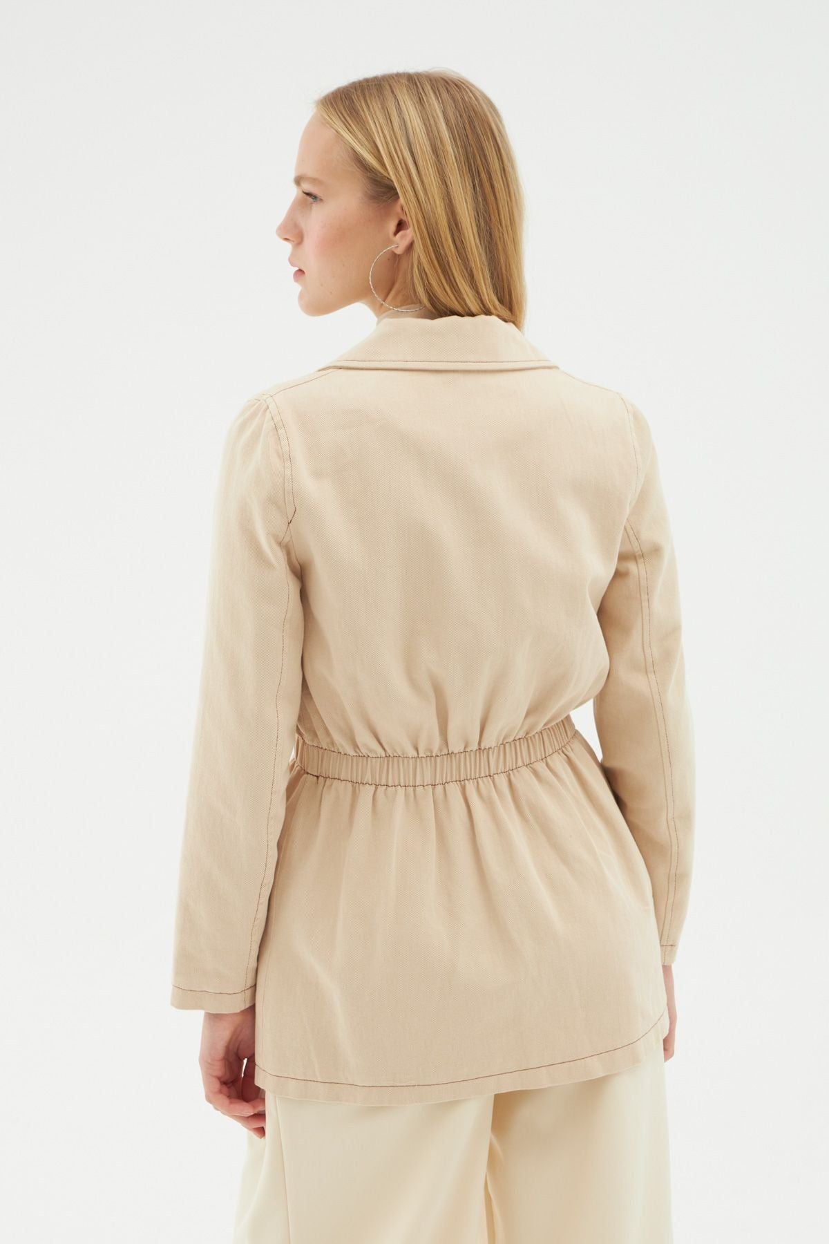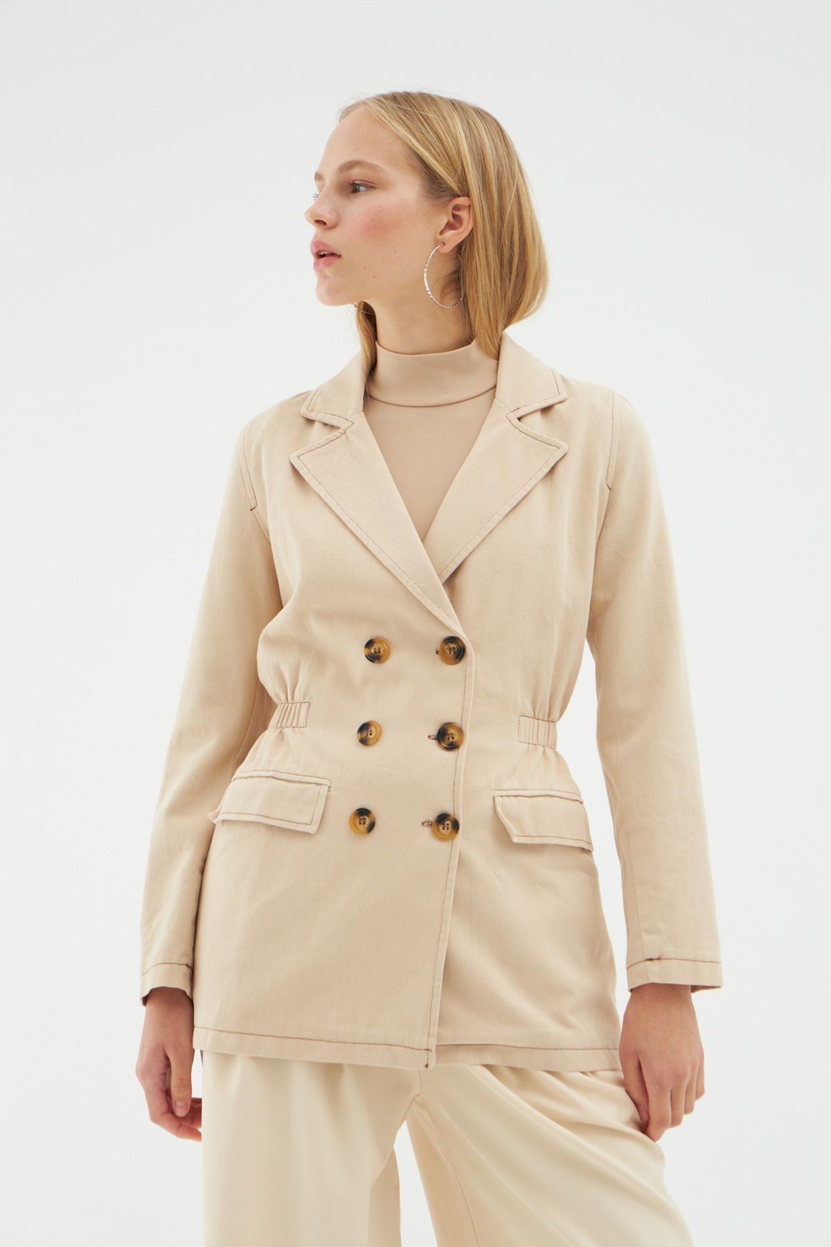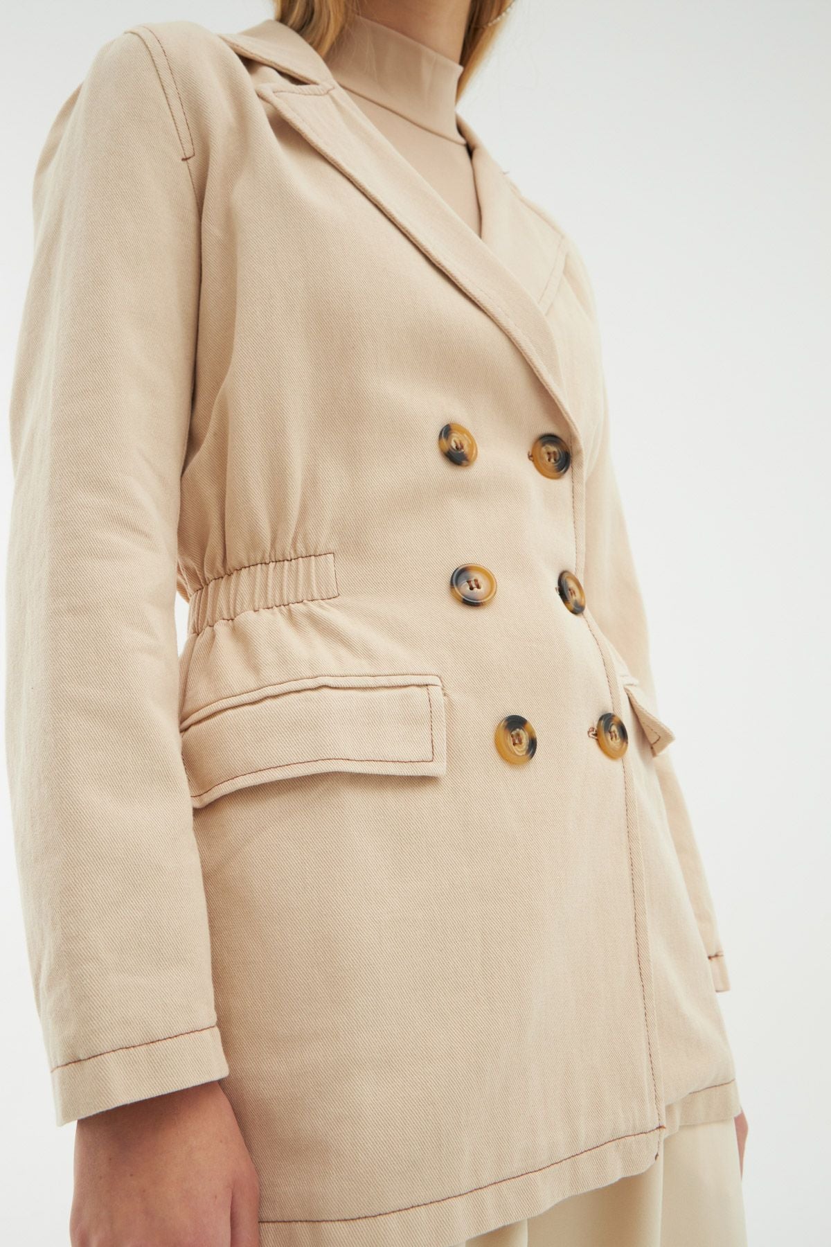 Büzgü Detaylı Kruvaze Ceket Taş