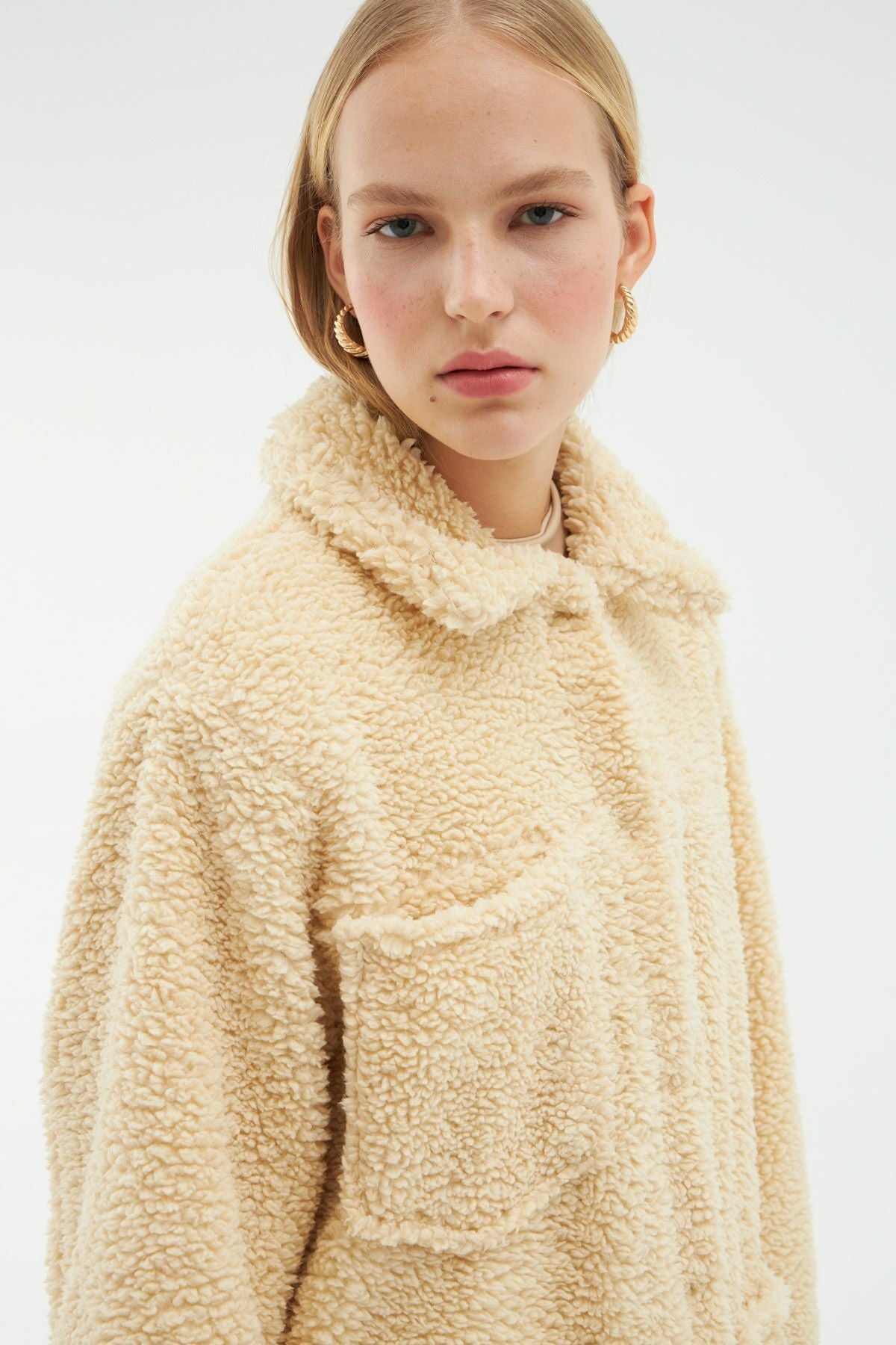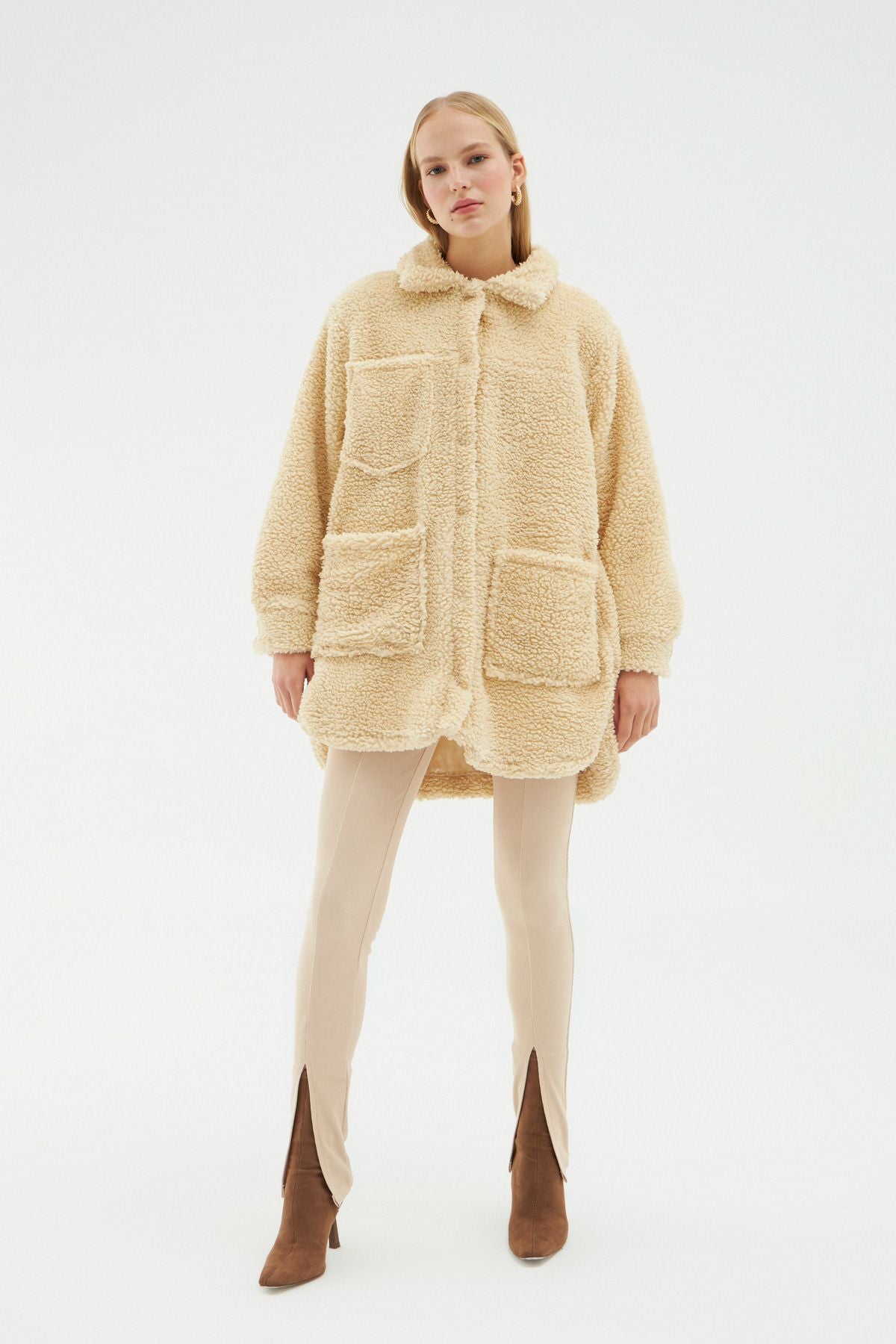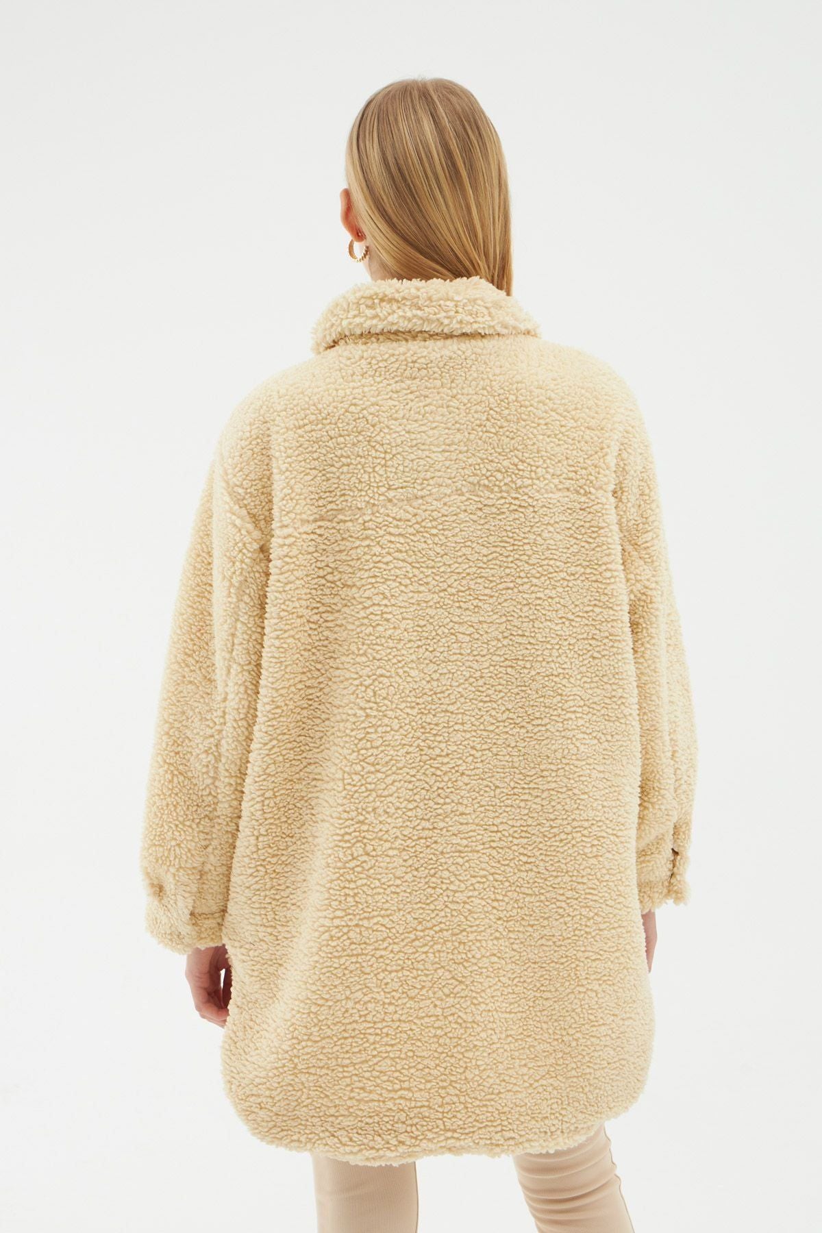 Cep Detaylı Peluş Ceket Bej