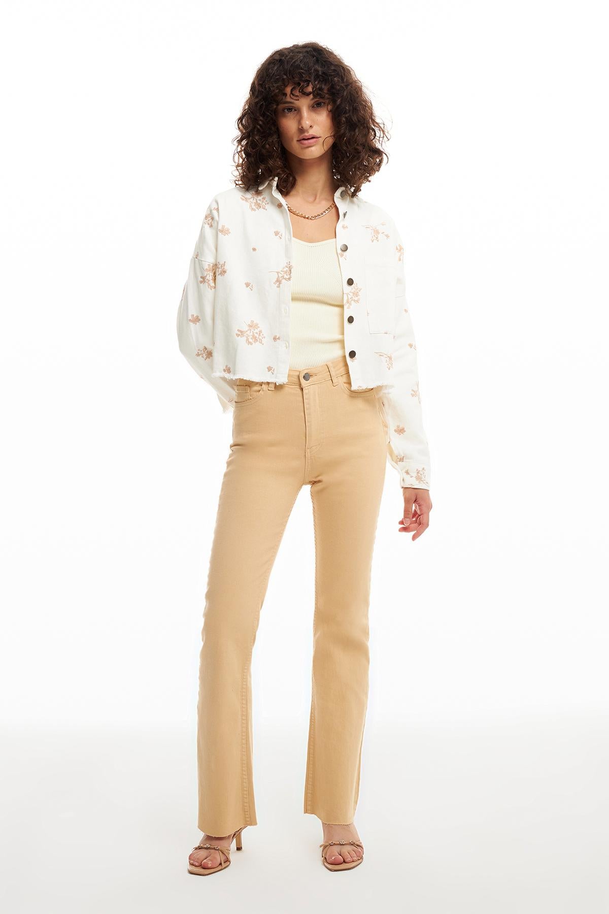 %100 pamuklu, uzun kollu, önü tek büyük ceplİ, metalİk düğmelİ, kısa boy, oversİze kesİm, nakış İşlemelİ ceket.