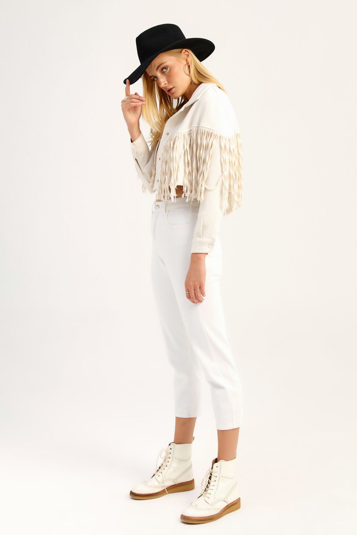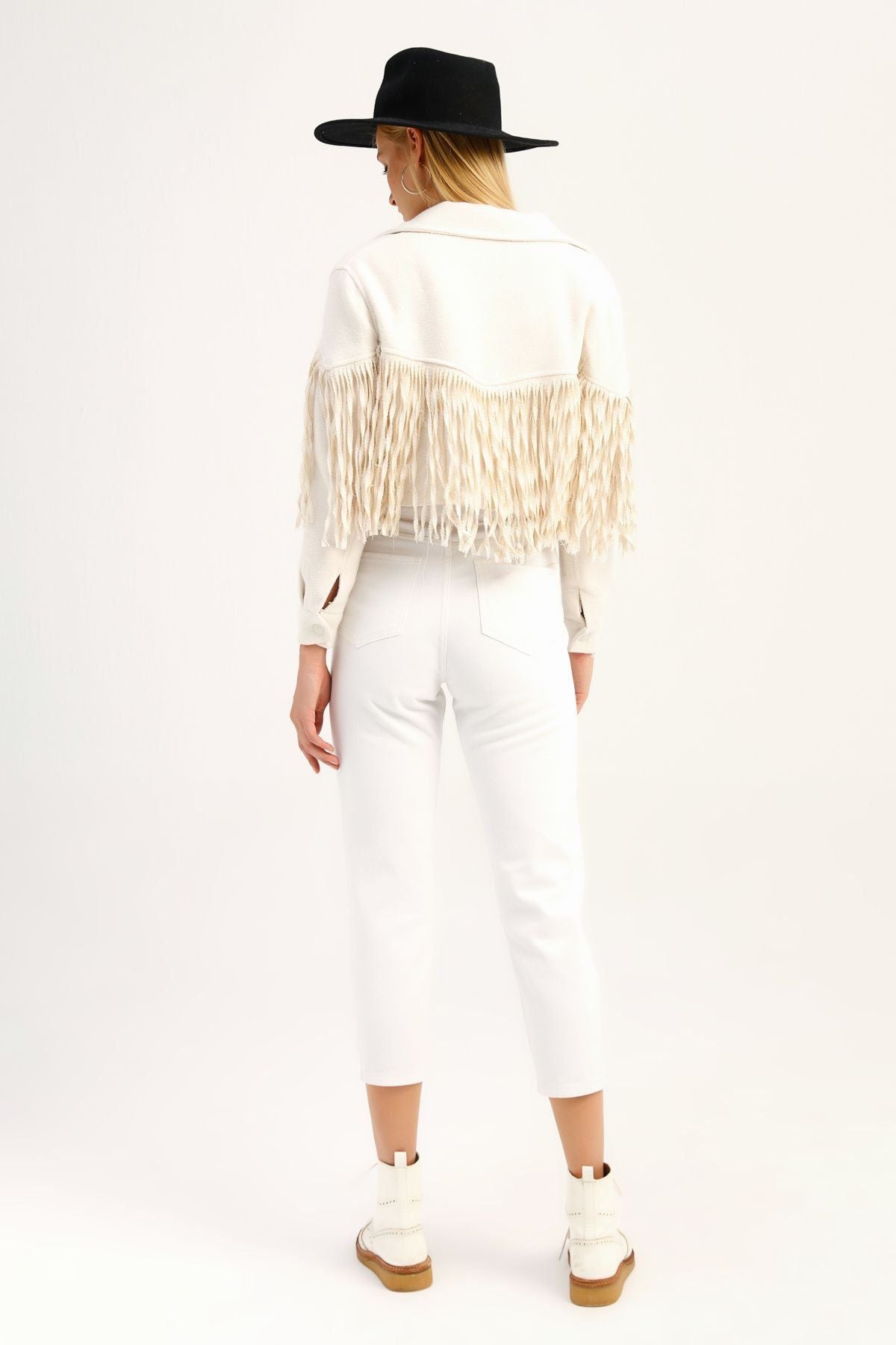 Püsküllü Crop Ceket Ekru