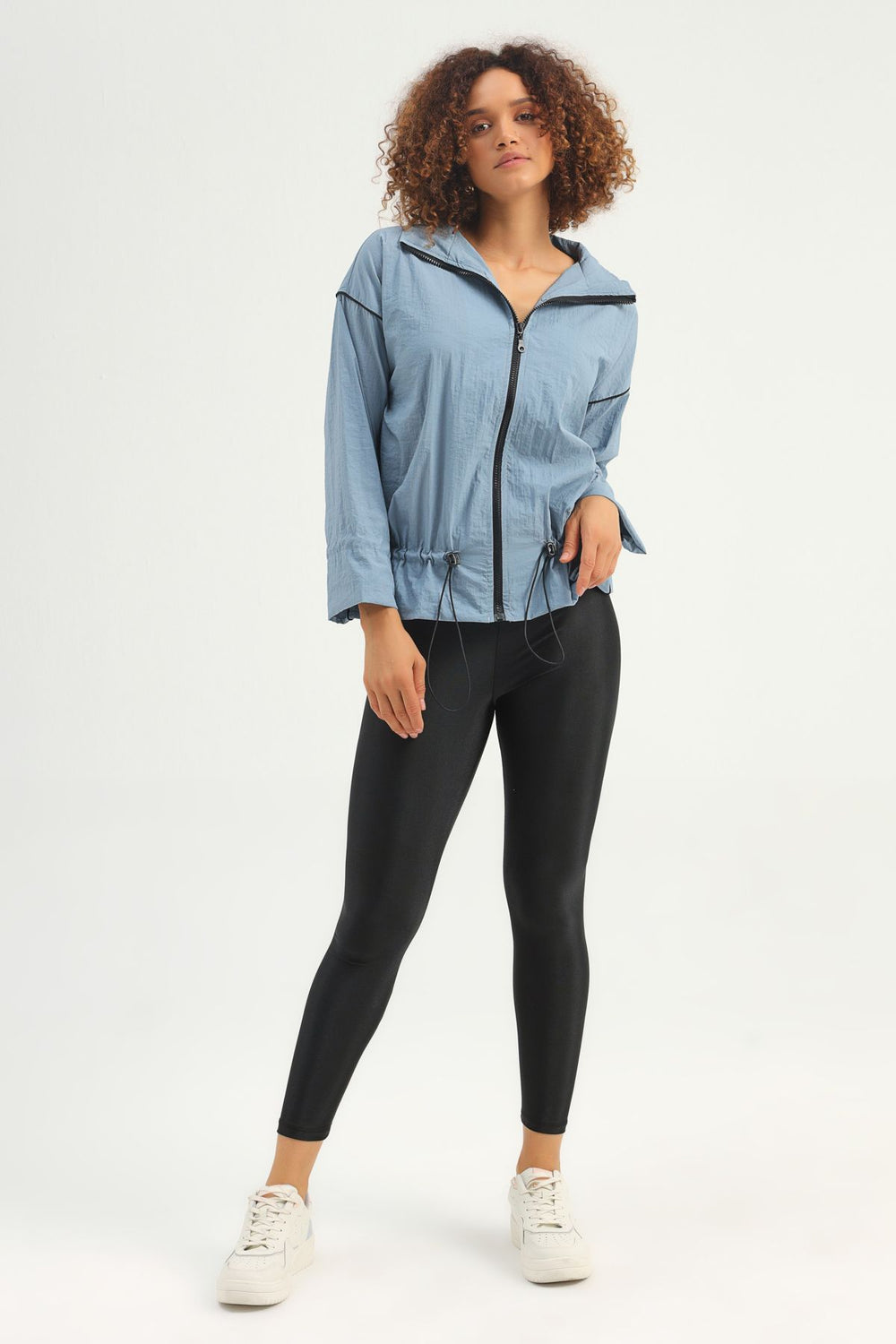 Desenli Önü Bağlamalı Ceket Açık Mavi