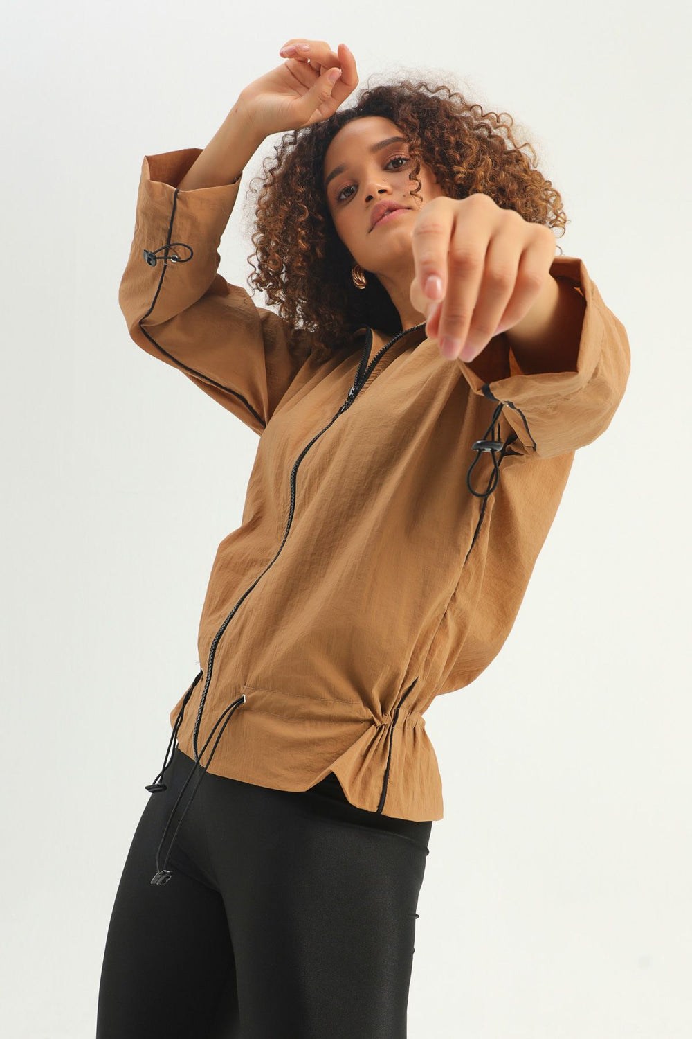 Şerit ve Püskül Detaylı Kısa Ceket Ekru