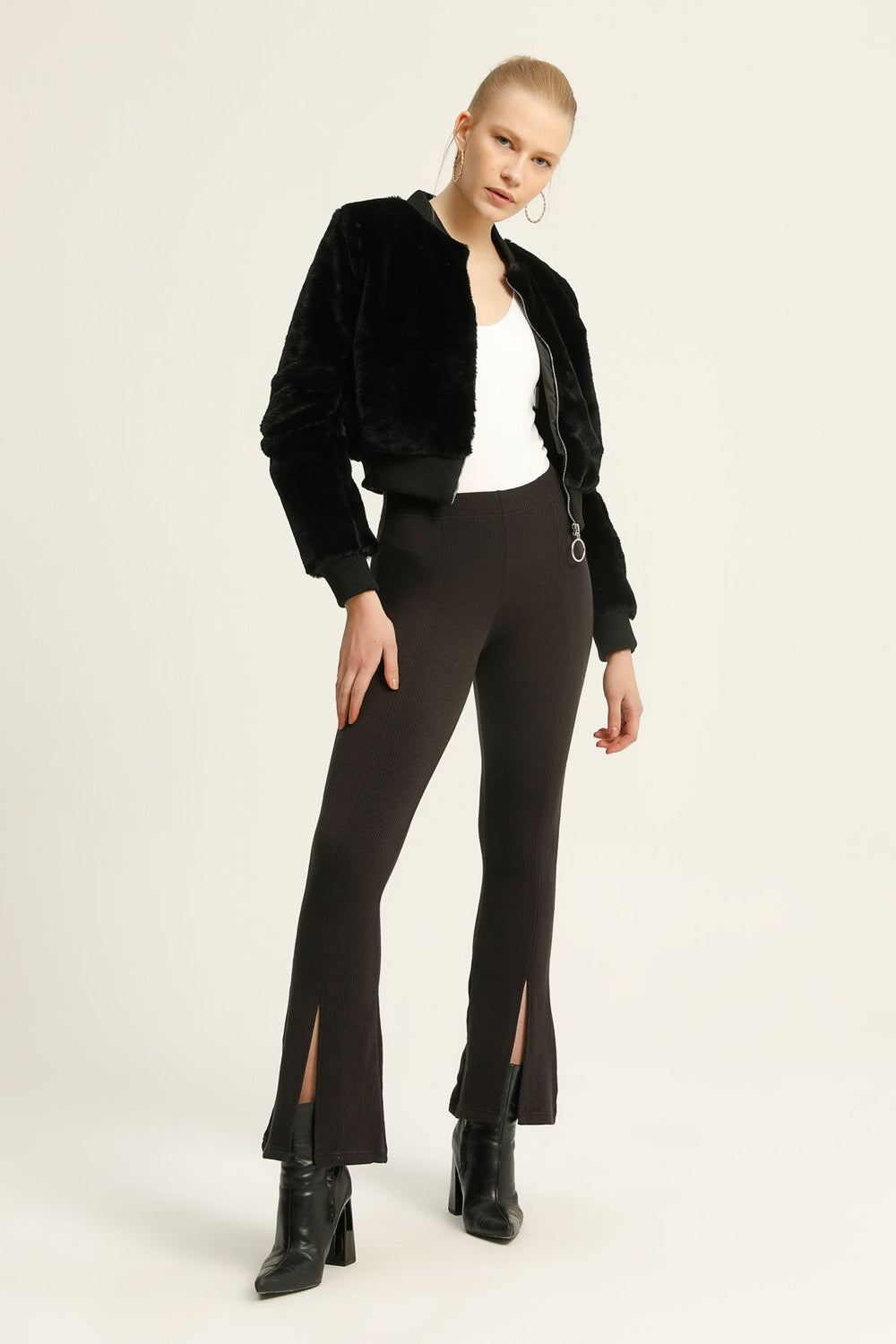 Önü Fermuarlı Kaşe Ceket Zümrüt