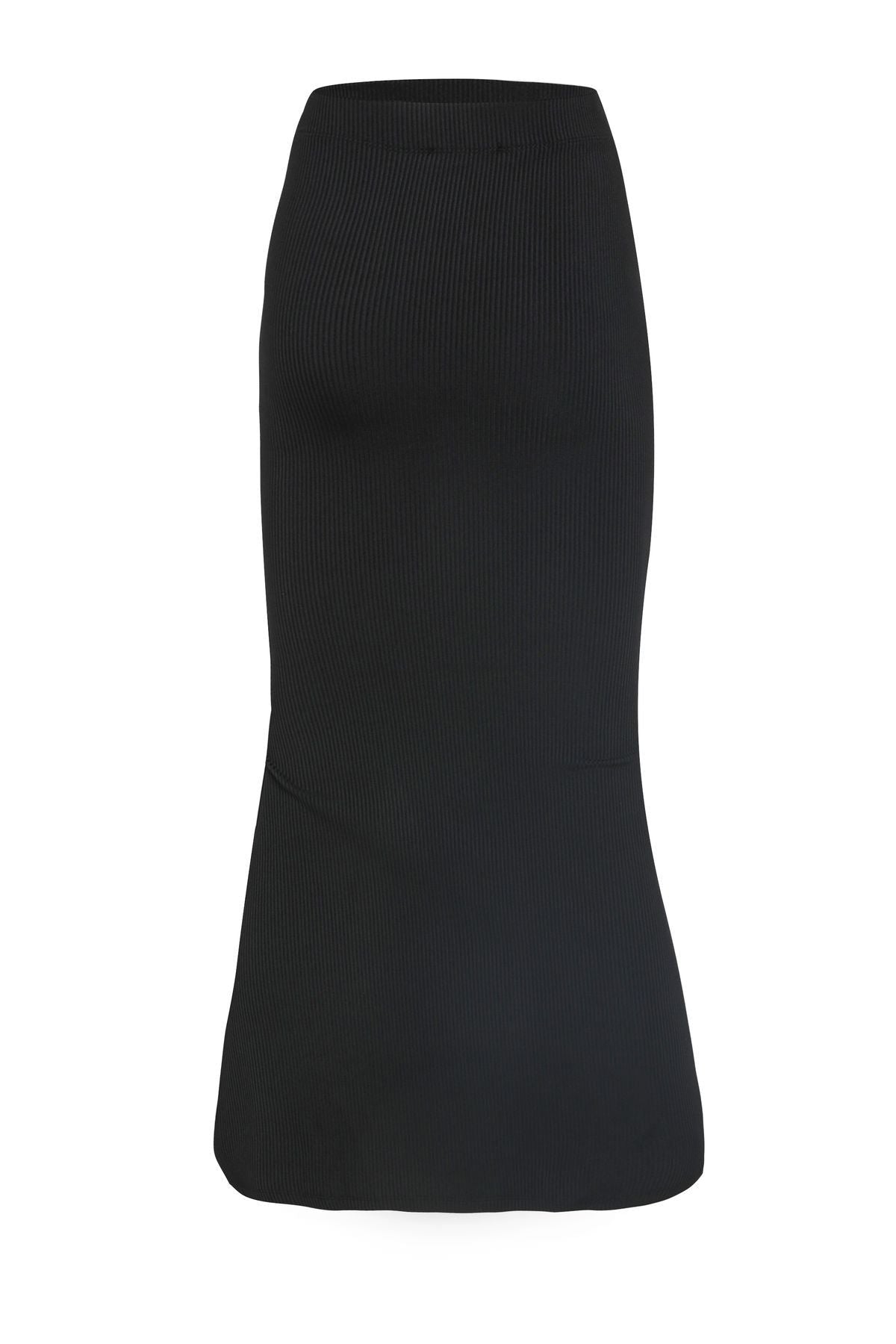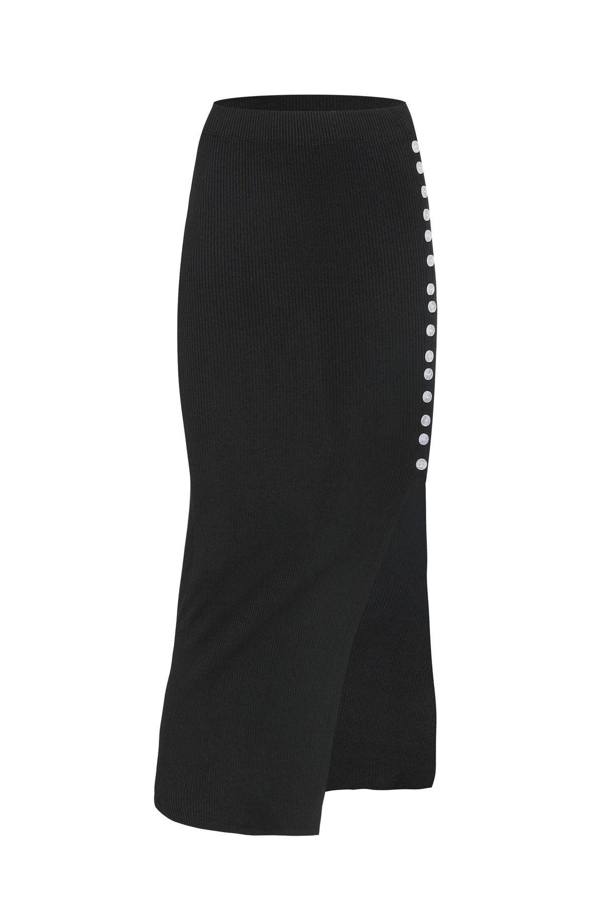 Düğmeli Yırtmaçlı Etek Siyah